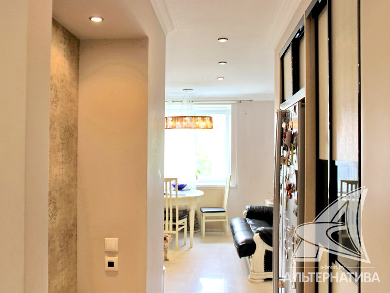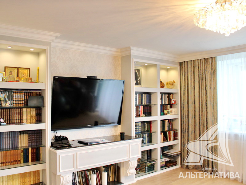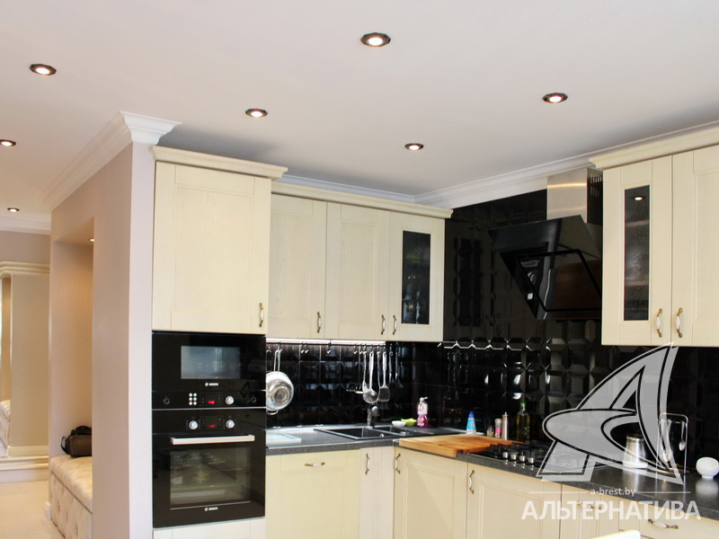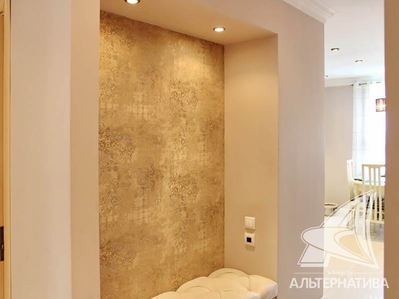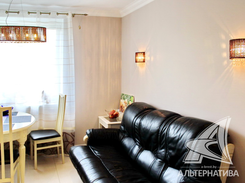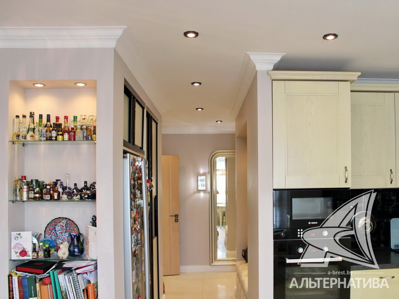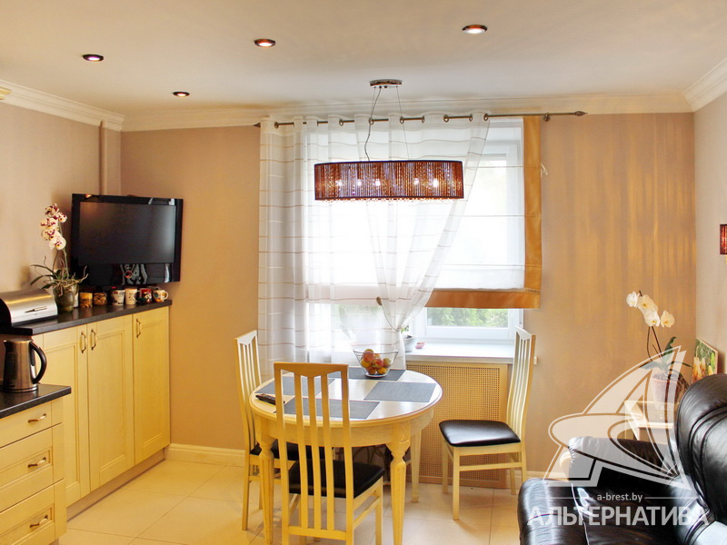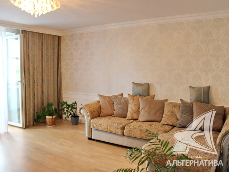 3-комнатная квартира, г. Брест, ул. Московская, 2000 г.п., 1 / 5 кирпич, 92,5 / 88,6 / 48,6 / 15,4, санузел раздельный, подвал, лоджия застеклена, межкомнатные двери - массив, входные двери двойные - металлическая и деревянная, потолки - снежка, комбинированные (2,58 м), полы (с подогревом) - паркетная доска и плитка (положены на стяжку), на стенах обои и декоративная окраска, в санузле современная плитка, заменена сантехника, заменены сантехнические трубы, инсталляция, проведена новая электропроводка, установлены новые радиаторы, телефон, домофон. Кухонный гарнитур, гардеробная, светильники. Остальная мебель по договоренности. Квартира с хорошим ремонтом. Квартира расположена на две стороны. Высокий цоколь. Дом расположен в глубине двора.