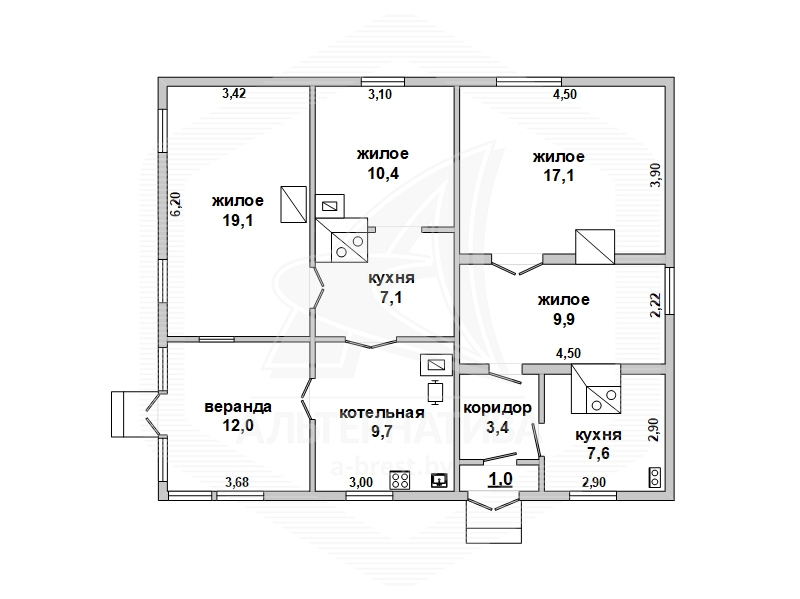 1962 г.п. 1 этаж. Общ.СНБ - 97,3 кв.м, общ.- 97,3 кв.м, жил.- 56,5 кв.м. 3 комнаты.