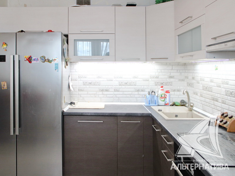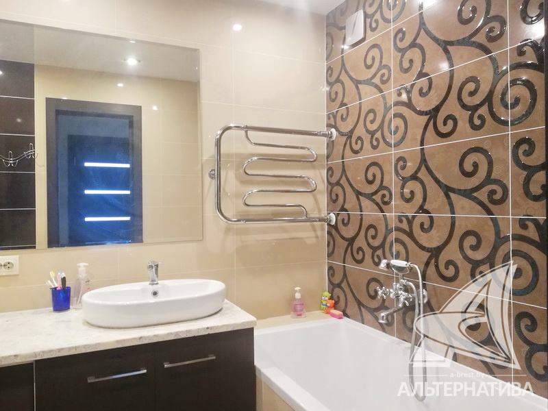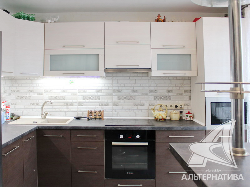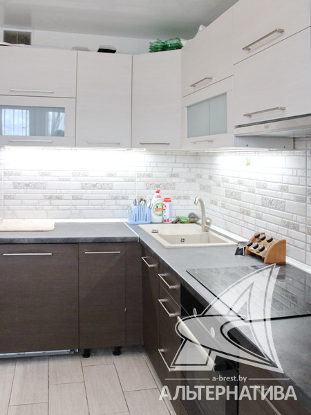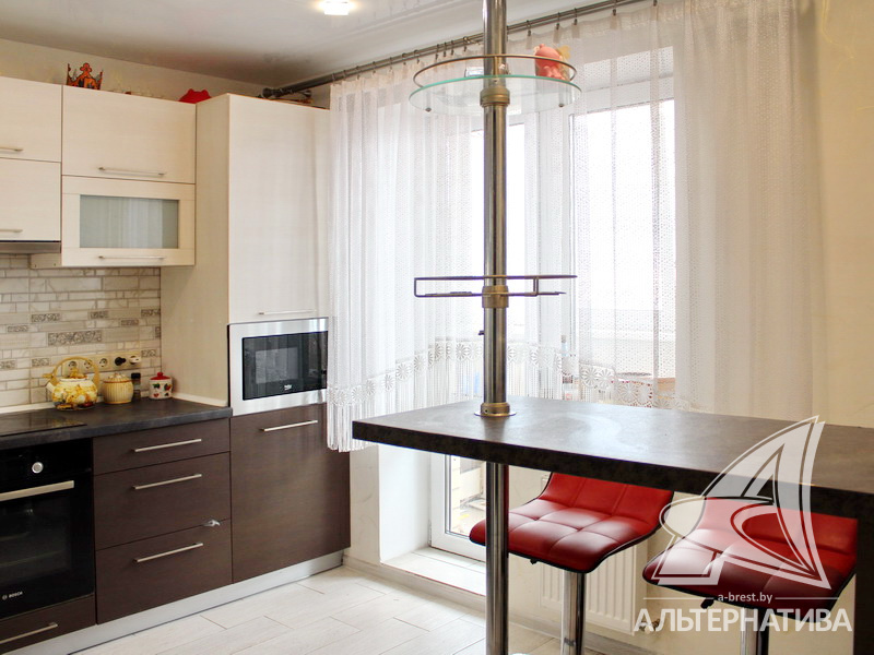 3-комнатная квартира, г. Брест, ул. Морозова, 2015 г.п., 12 / 17 ж/б каркас + кирпич, 85,5 / 80,1 / 45,9 / 11,3, санузел раздельный, лоджия застеклена, стеклопакеты, межкомнатные двери – шпон, входная дверь металлическая, потолки - снежка (комнаты) и натяжные (глянец) (коридор) (2,50 м), полы - ламинат (комнаты) и плитка (коридор, кухня), стены оклеены обоями, на кухне декоративная отделка фактурной штукатуркой, установлены фильтры очистки воды, ванна, телефон, домофон, система видеонаблюдения. Встроенный кухонный гарнитур, варочная поверхность, духовой шкаф, встроенная микроволновая печь. Шкаф-купе и комод в прихожей. Квартира с хорошим ремонтом. Два пассажирских и один грузовой лифты. Квартира расположена на две стороны. Чистый подъезд. На площадке имеется закрытое место для колясок и велосипедов. Дом оборудован пандусом. Во дворе игровая детская площадка, парковка для автомобилей. Дом расположен в глубине двора.