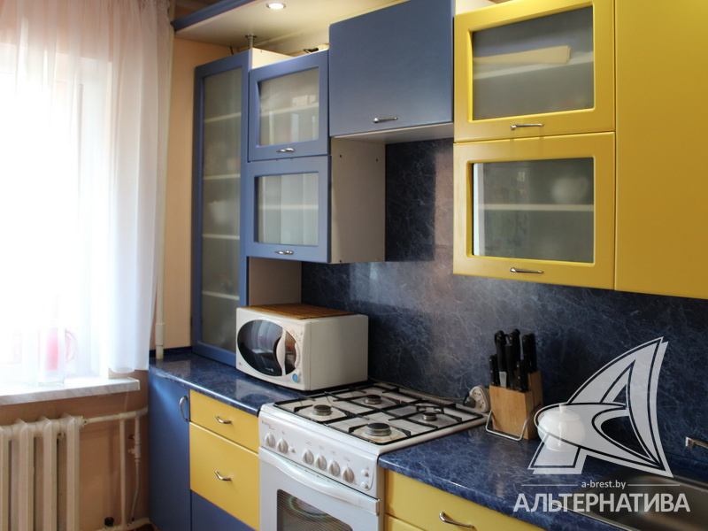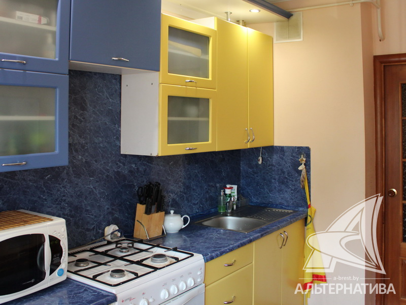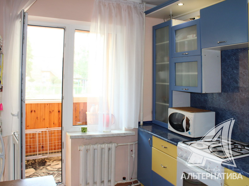 2-комнатная квартира, г. Брест, ул. Молодогвардейская, 2003 г.п., 1 / 9 панель, 56,0 / 54,1 / 29,2 / 9,1, санузел раздельный, подвал, лоджия застеклена, двухкамерные стеклопакеты, межкомнатные двери - массив, входная дверь металлическая, потолки - снежка, комбинированные (2,60 м), полы - ковролин и плитка, стены оклеены обоями, в санузле современная плитка, заменен полотенцесушитель, акриловая ванна, заменены сантехнические трубы (пластик), установлены фильтры очистки воды, телефон, домофон. Встроенный кухонный гарнитур, два шкафа-купе в коридоре. Квартира с хорошим ремонтом. Квартира расположена на две стороны. Чистый подъезд. Тамбур на четыре квартиры. На площадке имеется закрытое место для колясок и велосипедов. Дом оборудован пандусом. Во дворе игровая детская площадка, парковка для автомобилей. Высокий цоколь. Дом расположен в глубине двора. В шаговой доступности остановки общественного транспорта, учреждения образования, магазины, отделение почты, Беларусбанк.