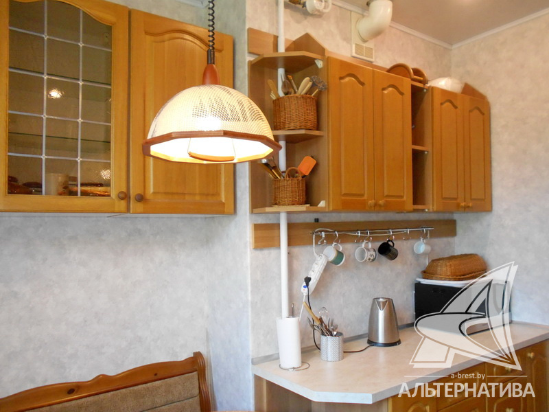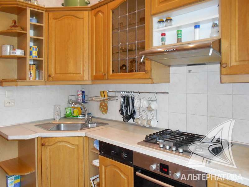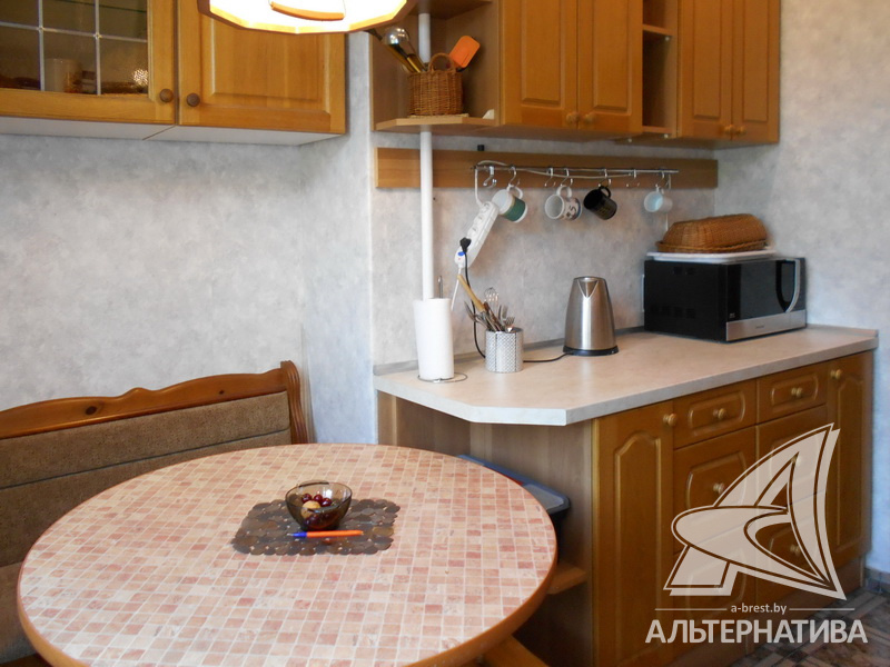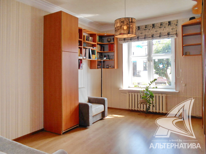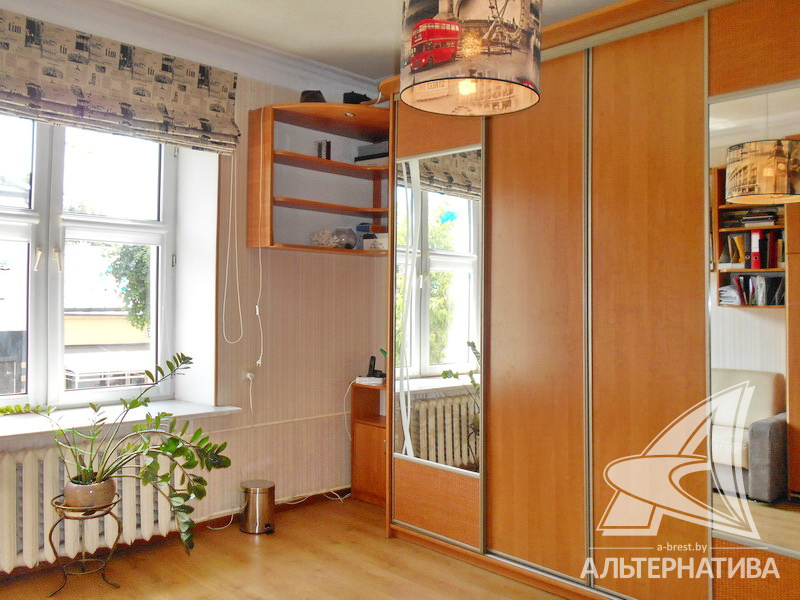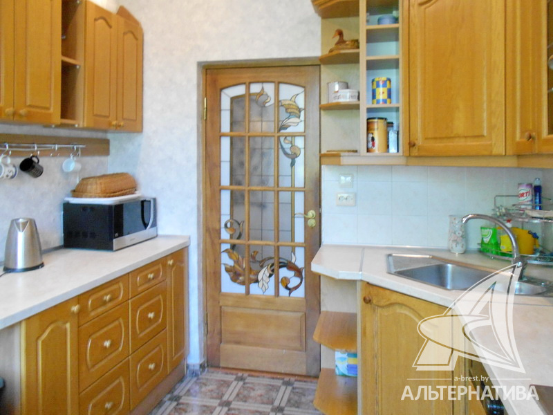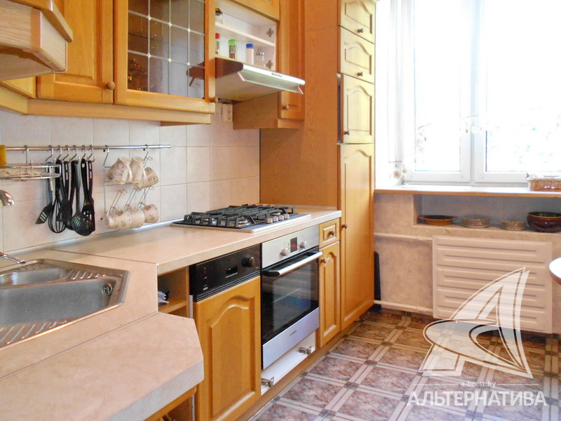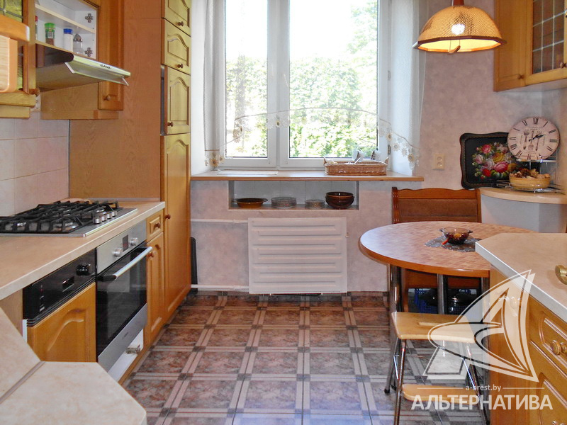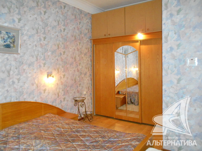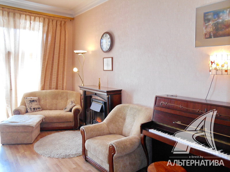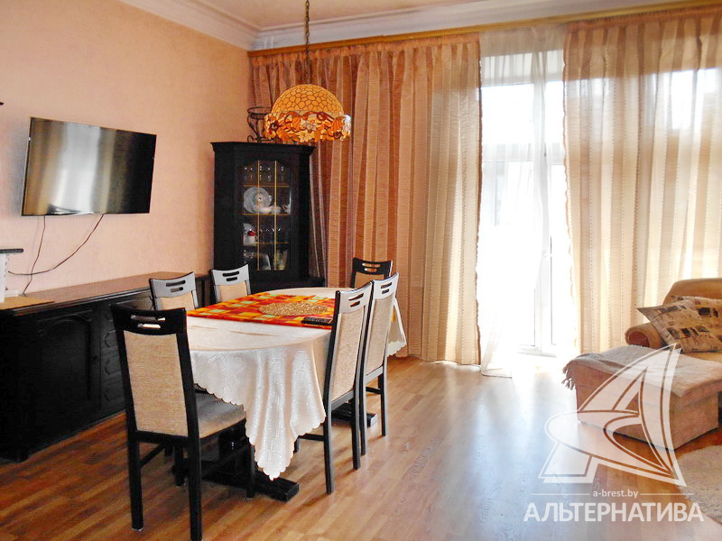 3-комнатная квартира, г. Брест, ул. Советская, 1930 г.п., 2 / 3 кирпич, 84,2 / 83,2 / 58,5 / 9,3, санузел раздельный, балкон, двухкамерные стеклопакеты, межкомнатные двери - массив (дуб), потолки - снежка (3,60 м), полы - ламинат и плитка (с подогревом в санузле) (положены на стяжку), на стенах фактурные обои, в санузле современная плитка, заменена сантехника, заменен полотенцесушитель, заменены сантехнические трубы, газовая колонка в санузле, автономный газовый котел, телефон, домофон. Кухонный гарнитур (дуб), духовой шкаф, варочная поверхность, вытяжка, полки. Три шкафа-купе. Квартира с хорошим ремонтом. Находится под охраной. Квартира расположена на две стороны. Кухня и спальня выходят во двор, чистый подъезд. Тамбур на две квартиры.