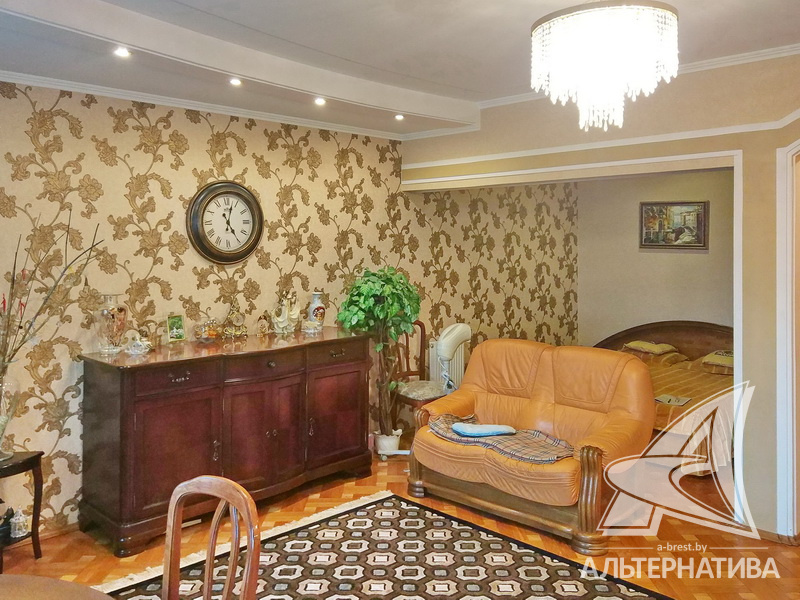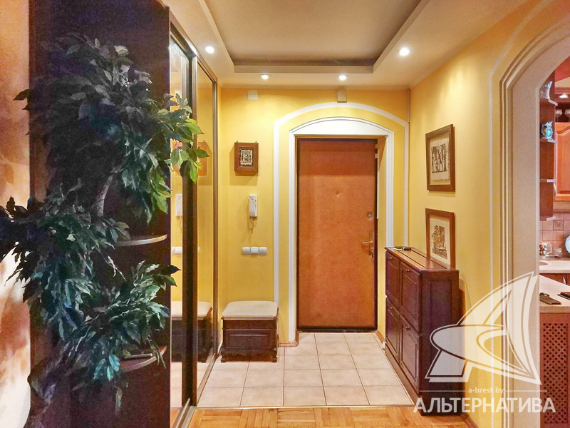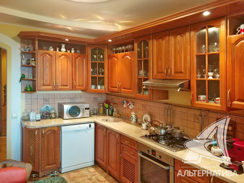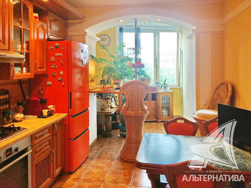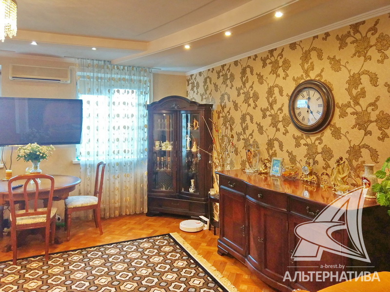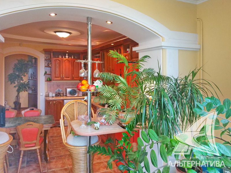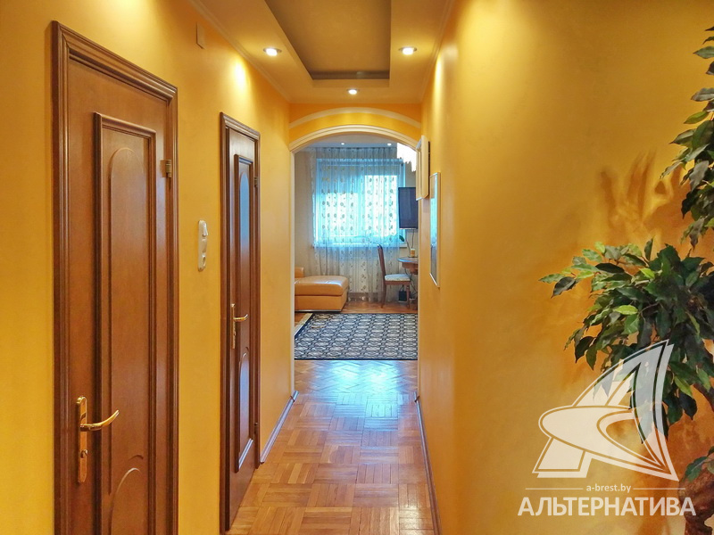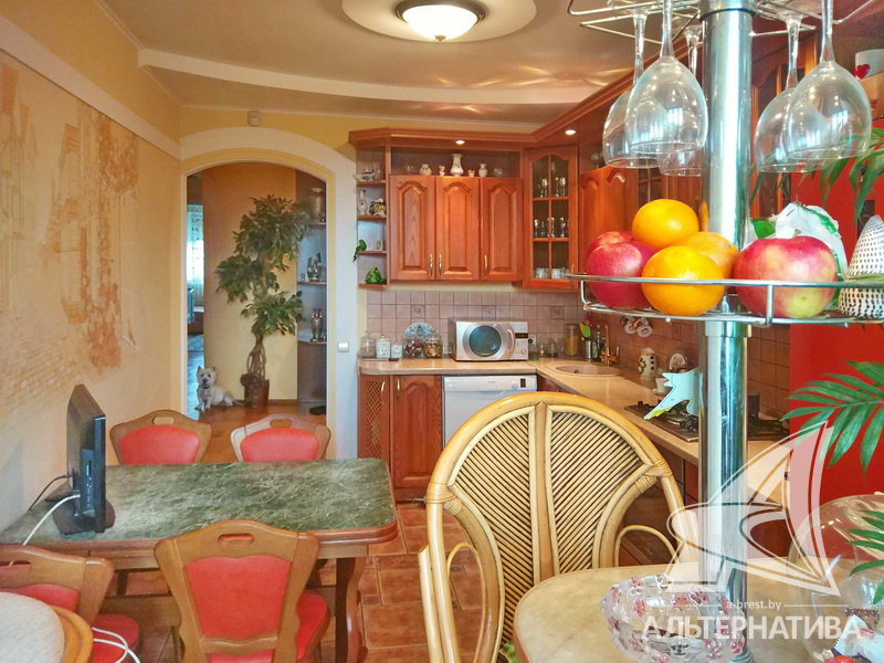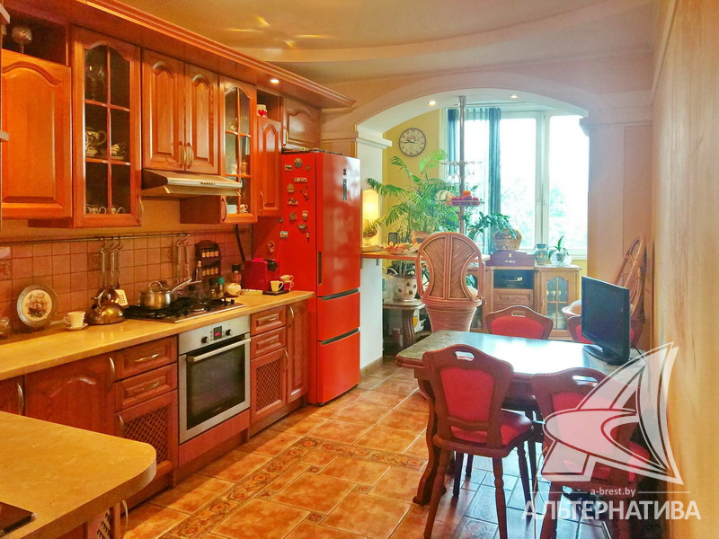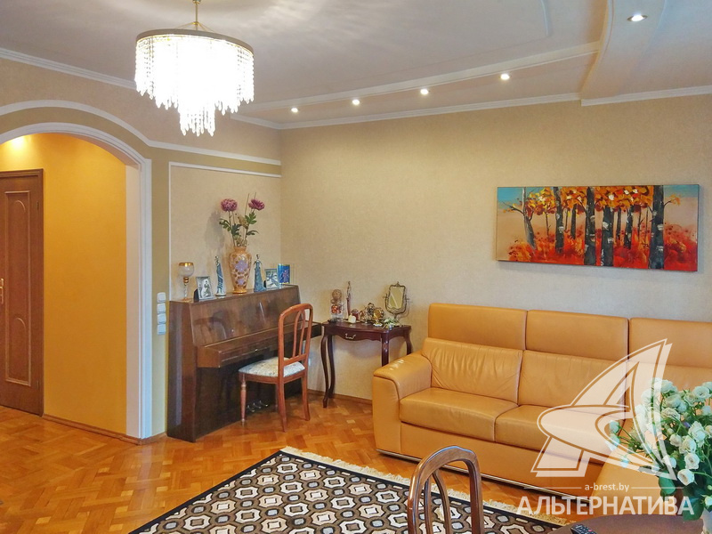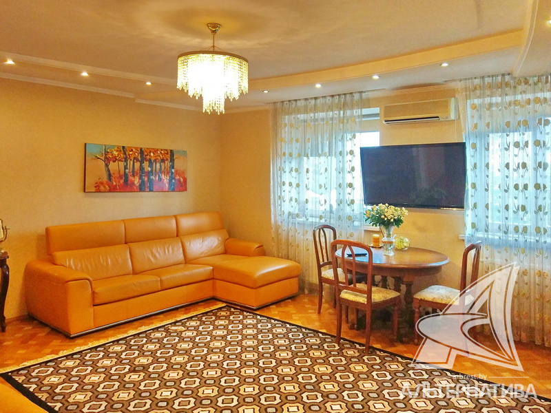 2-комнатная квартира, г. Брест, пр-т Машерова, 2001 г.п., 4 / 5 кирпич, 90,2 / 90,2 / 48,9 / 20,9, санузел раздельный, лоджия застеклена, деревянные стеклопакеты, межкомнатные двери - массив (дуб), входная дверь металлическая, многоуровневые потолки - снежка (2,74 м), полы - паркет (дуб) и плитка (Испания), на стенах обои и декоративная окраска, в санузле современная плитка, установлены фильтры очистки воды, телефон, домофон. Кухонный гарнитур, варочная панель, духовой шкаф, вытяжка, посудомоечная машина, обеденный стол, стулья (дуб). Четыре встроенных шкафа, телевизор, стиральная машина. Квартира с хорошим ремонтом. Находится под охраной. Квартира расположена на две стороны.