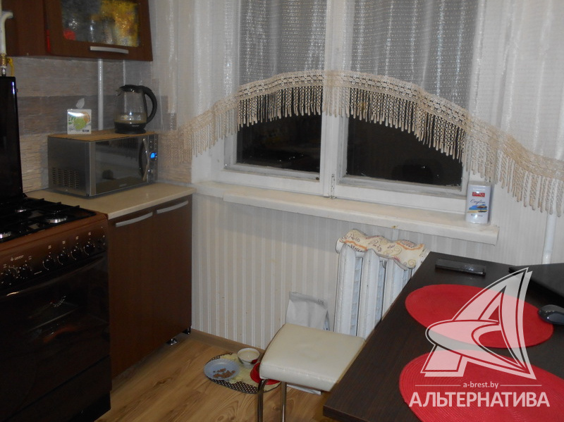 3-комнатная квартира, г. Брест, пр-т Партизанский, 1973 г.п., 2 / 5 панель, 51,1 / 49,5 / 33,9 / 5,4, санузел раздельный, подвал, два балкона (один застеклен), многоуровневые потолки - из гипсокартона (2,55 м), деревянные окна, полы - ламинат, в санузле современная плитка, заменены сантехнические трубы (пластик), межкомнатные двери - МДФ, входная дверь металлическая, на стенах обои и декоративная окраска (гостиная), телефон, домофон. Встроенный кухонный гарнитур, шкаф-купе в спальне. Квартира с хорошим ремонтом. Квартира расположена на две стороны. Чистый подъезд. Дом расположен в глубине двора.