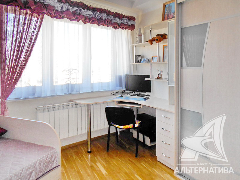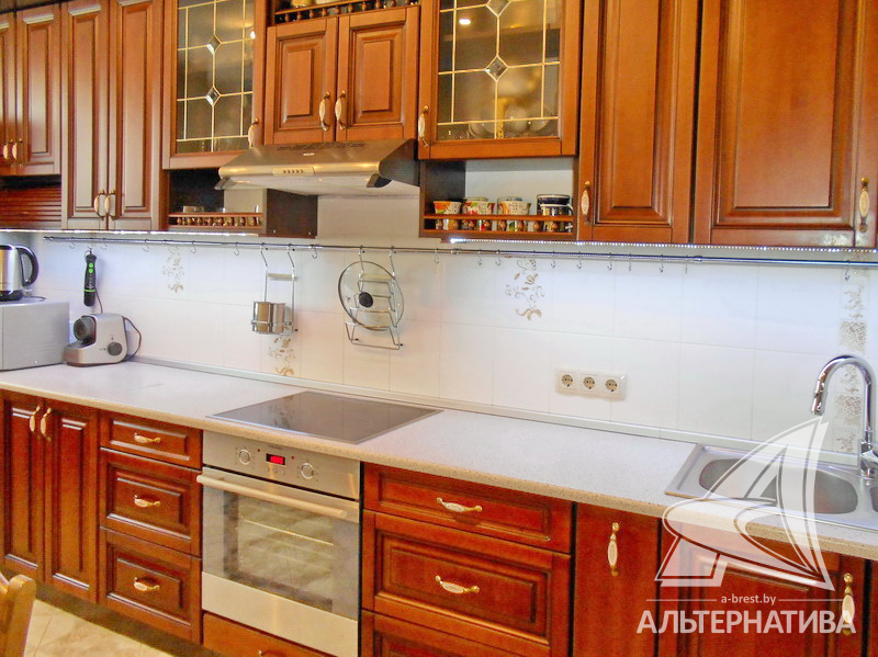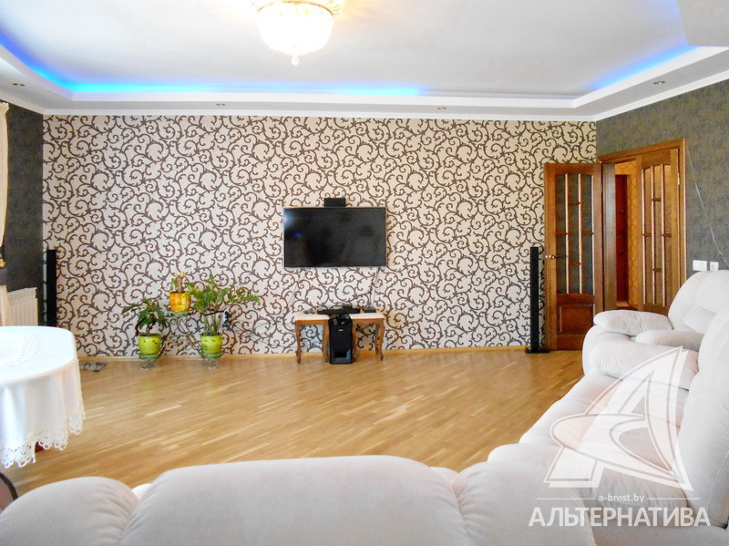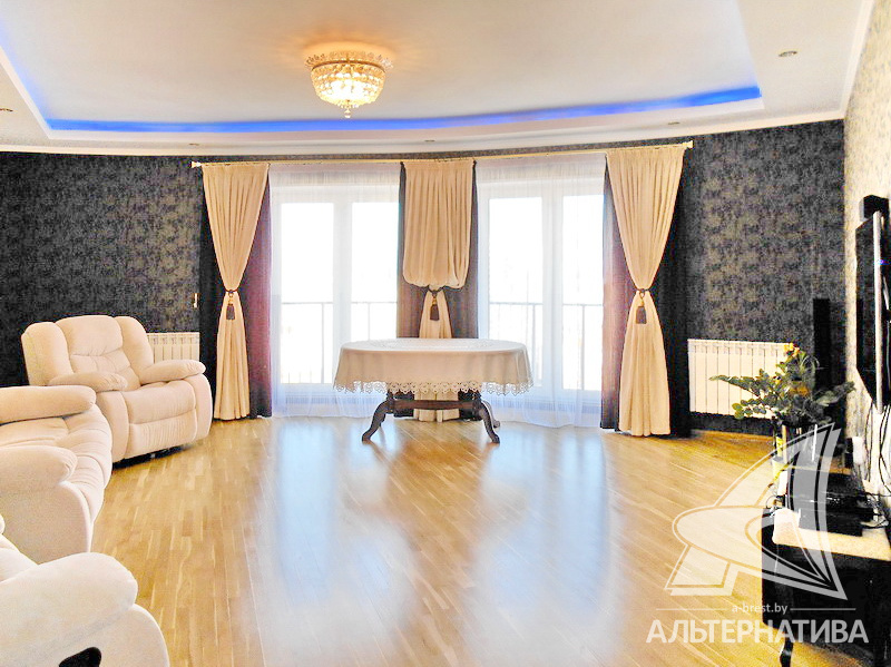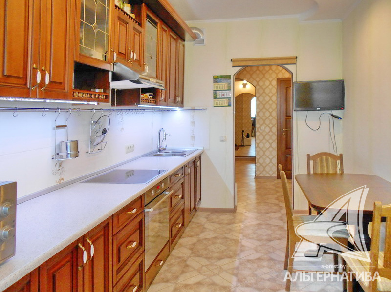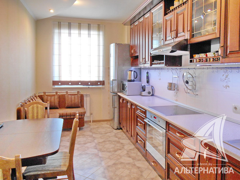 3-комнатная квартира, г. Брест, ул. Стафеева, 2009 г.п., 14 / 14 кирпич, 91,4 / 91,4 / 55,8 / 11,7, санузел раздельный, многоуровневые потолки с интересной системой освещения, двухкамерные стеклопакеты, в зале окна во французском стиле, полы - паркет и плитка, в санузле современная плитка, заменена сантехника, заменен полотенцесушитель, межкомнатные двери - массив (дуб), входная дверь металлическая, проведена новая электропроводка, телефон, домофон, система видеонаблюдения. Кухонный гарнитур, индукционная плита, духовой шкаф, вытяжка. Встроенный шкаф-купе в комнате, спальный гарнитур, гардеробная. Квартира с индивидуальными дизайнерскими решениями. Квартира расположена на две стороны. Чистый подъезд. Два пассажирских и один грузовой лифты. Есть технический этаж.