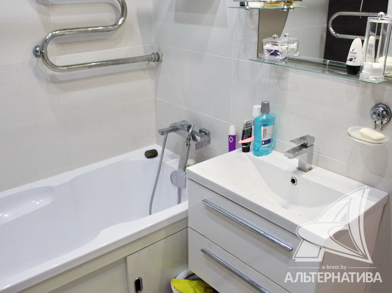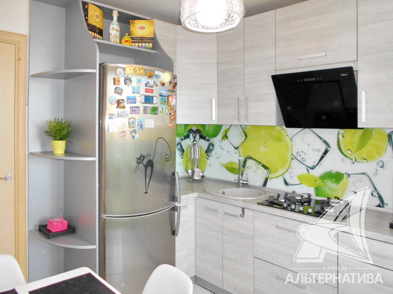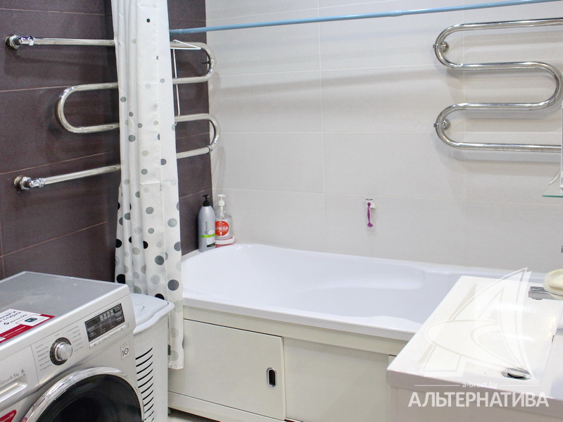 3-комнатная квартира, г. Брест, ул. Шоссейная, 1993 г.п., 5 / 5 кирпич, 64,3 / 62,7 / 36,9 / 8,4, санузел раздельный, подвал, лоджия застеклена, комбинированные многоуровневые потолки - из гипсокартона и натяжные, с интересной системой освещения (2,58 м), стеклопакеты, полы - ламинат (положен на стяжку), в санузле современная плитка, заменена сантехника, заменен полотенцесушитель, акриловая ванна, заменены сантехнические, водопроводные и канализационные трубы, инсталляция, установлен бойлер, межкомнатные двери – шпон, входная дверь металлическая, на стенах обои и декоративная окраска (кухня, коридор), установлены фильтры очистки воды, телефон, домофон. Встроенный кухонный гарнитур, варочная поверхность, духовой шкаф, вытяжка, посудомоечная машина. Шкаф-купе в прихожей. Квартира с хорошим ремонтом. Квартира расположена на две стороны, кухня и спальня выходят во двор.