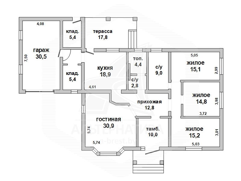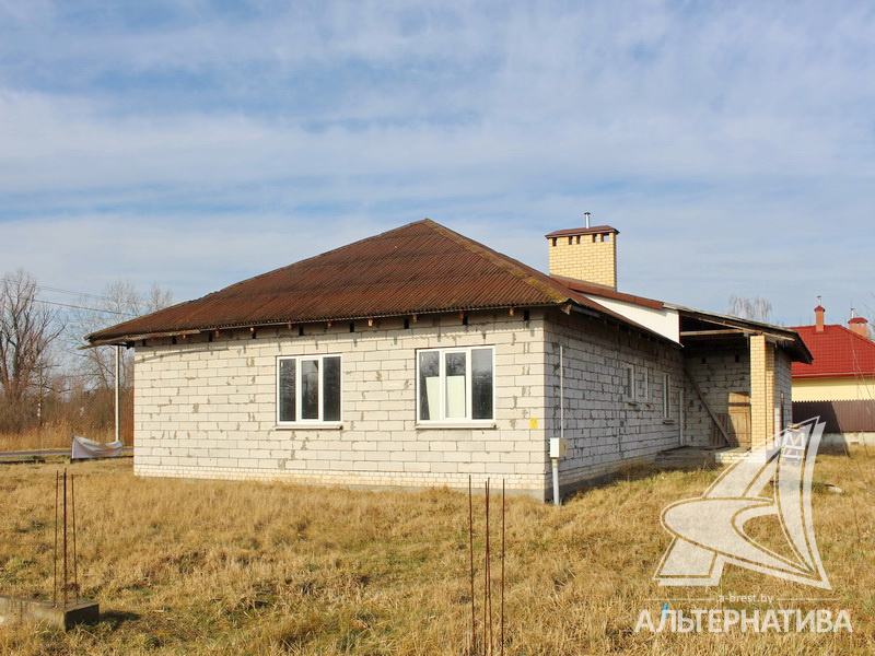 Дом под чистовую отделку в г.Бресте. 2019 г.п. 1 этаж. Общ.СНБ - 190,3 кв.м, общ.- 154,5 кв.м, жил.- 76,0 кв.м, кух.- 18,9 кв.м. 4 комнаты, потолки - 2,9 м.