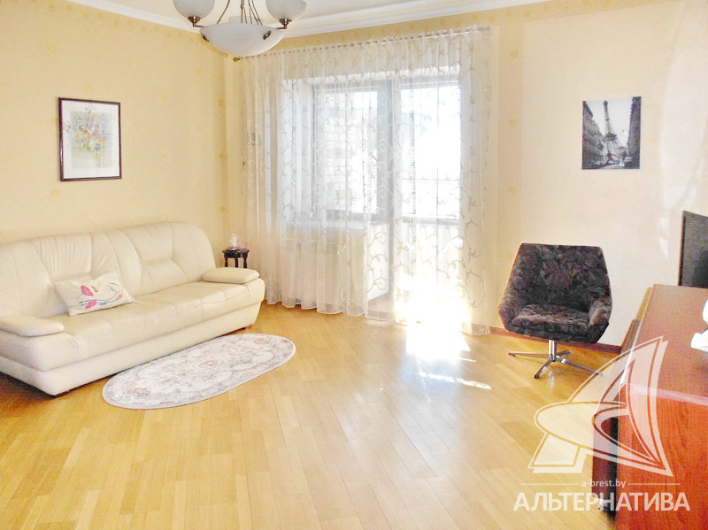 1-комнатная квартира, г. Брест, ул. Маяковского, 2007 г.п., 7 / 9 кирпич, 45,7 / 44,7 / 11,2 / 21,7, санузел совмещенный, лоджия застеклена, потолки - снежка, двухкамерные стеклопакеты, полы - паркет, в санузле современная плитка, заменена сантехника, заменен полотенцесушитель, ванна, межкомнатные двери - массив, стены оклеены обоями, телефон, домофон. Кухонный гарнитур, варочная поверхность. Квартира с хорошим ремонтом. Один грузопассажирский лифт. Тамбур на две квартиры.
