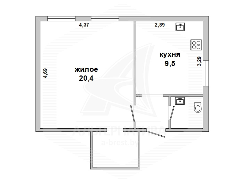 | Жилая площадь | 20.4 м² |