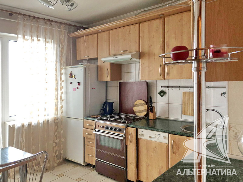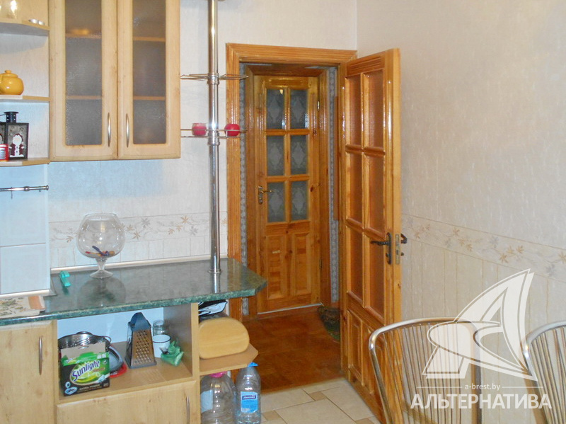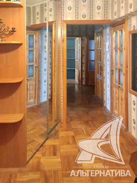 3-комнатная квартира, г. Брест, ул. Орловская, 1988 г.п., 9 / 9 панель, 71,0 / 66,6 / 41,6 / 9,3, санузел раздельный, две лоджии застеклены, потолки - снежка (2,62 м), стеклопакеты, полы - паркет и плитка, в санузле современная плитка, межкомнатные двери - массив, входная дверь металлическая, стены оклеены обоями, телефон, домофон. Встроенный кухонный гарнитур, два шкафа-купе. Квартира с хорошим ремонтом. Один пассажирский лифт.