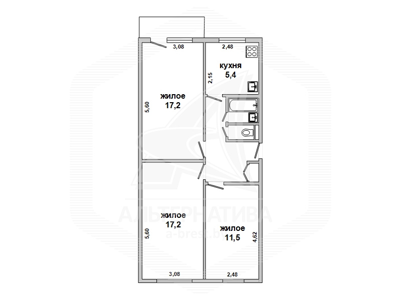 3-комнатная квартира, г. Брест, ул. Московская, 1972 г.п., 5 / 5 панель, 62,1 / 61,3 / 45,9 / 5,4, санузел раздельный, подвал, балкон застеклен, потолки - частично снежка (2,54 м), частично стеклопакеты, полы - паркет и плитка, в санузле современная плитка, заменена сантехника, чугунная ванна, заменены трубы (пластик), входная дверь металлическая, стены оклеены обоями, новый электросчетчик, телефон, домофон. Встроенный кухонный гарнитур. Квартира в жилом состоянии. Квартира расположена на две стороны, чистый подъезд. Дом расположен в глубине двора.