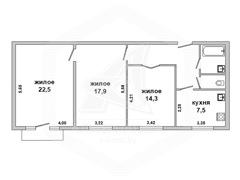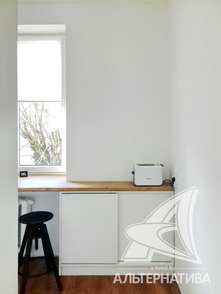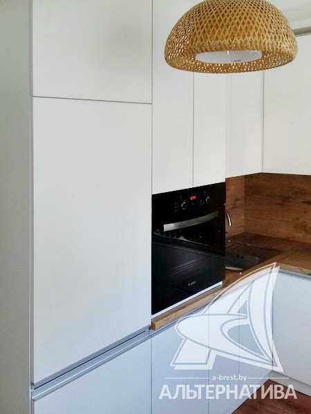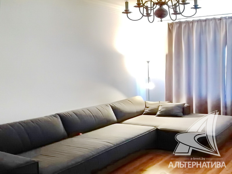 3-комнатная квартира, г. Брест, ул. Комсомольская, 1957 г.п., 2 / 3 кирпич, 77,2 / 76,7 / 54,7 / 7,5, санузел раздельный, подвал, балкон, потолки - снежка (2,95 м), частично стеклопакеты, полы - ламинат (положен на доску), в санузле современная плитка, заменена сантехника, заменены сантехнические, водопроводные и канализационные трубы, газовая колонка в санузле, межкомнатные двери - массив, стены ошпатлеваны, декоративная окраска, проведена новая электропроводка, телефон, домофон. Встроенный кухонный гарнитур, варочная поверхность, духовой шкаф, вытяжка, посудомоечная машина. Корпусная мебель в коридоре по индивидуальному заказу, итальянский диван, двуспальная кровать, шкаф в спальне, комод, две тумбы. Квартира с индивидуальными дизайнерскими решениями.