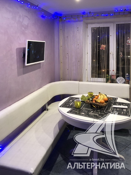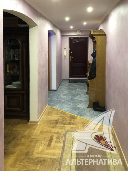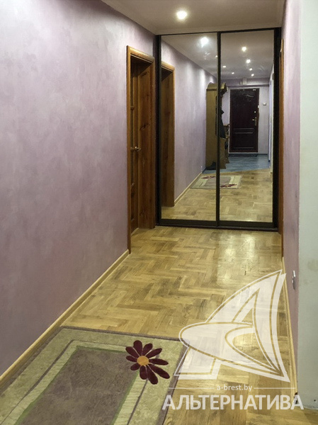 3-комнатная квартира, г. Брест, ул. Луцкая, 1991 г.п., 9 / 9 панель, 73,7 / 68,9 / 40,6 / 9,1, санузел раздельный, две лоджии застеклены, натяжные потолки (сатин) со встроенными светильниками (2,50 м), стеклопакеты, полы - паркет и плитка (кухня, коридор), в санузле современная плитка, заменена сантехника, заменен полотенцесушитель, межкомнатные двери - массив, входная дверь металлическая, стены оклеены обоями, на кухне дкоративная отделка штукатуркой, телефон, домофон. Встроенный кухонный гарнитур, бытовая техника: варочная поверхность, электрический духовой шкаф, вытяжка, корпусная мебель в зале. Квартира с хорошим ремонтом. Квартира расположена на две стороны. Один пассажирский лифт. Дом расположен в глубине двора.