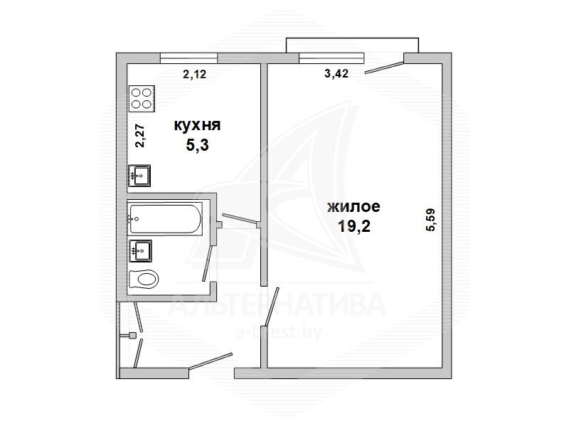 | Жилая площадь | 19.2 м² |