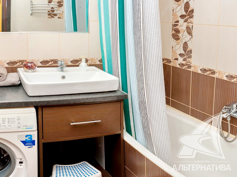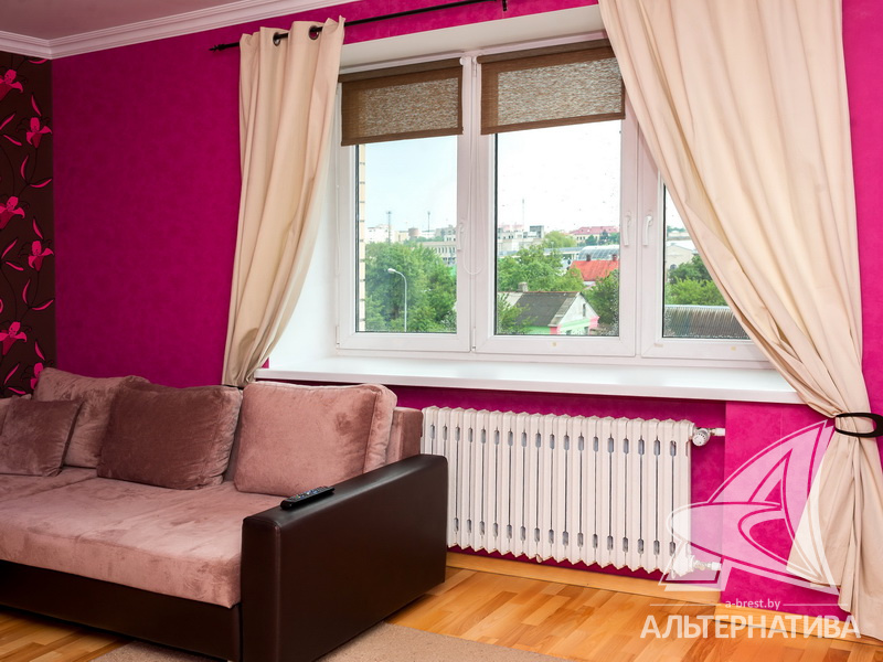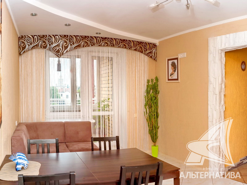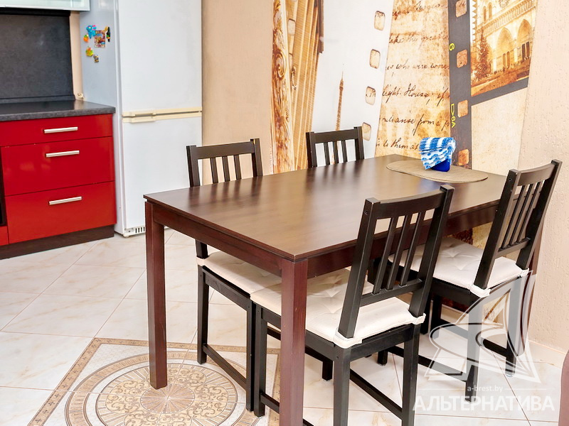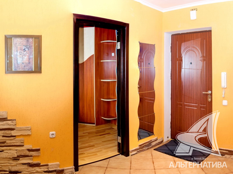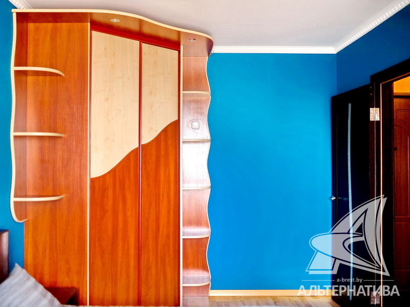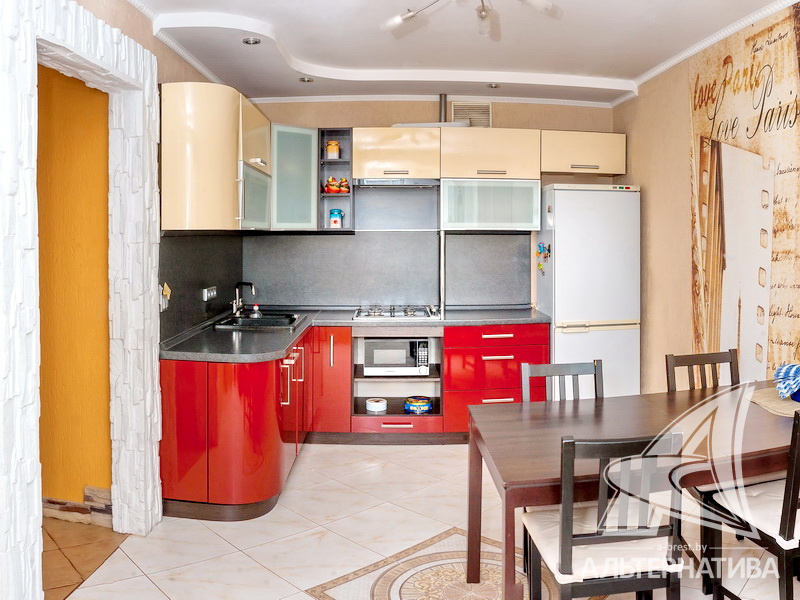 2-комнатная квартира, г. Брест, ул. Республиканская, 2010 г.п., 4 / 5 кирпич, 66,9 / 62,4 / 33,2 / 13,6, санузел раздельный, подвал, две лоджии застеклены, потолки - 2,50 м, стеклопакеты, полы - паркетная доска (комнаты), в санузле современная плитка, межкомнатные двери - массив (сосна), входная дверь металлическая, на стенах декоративная штукатурка, немецкие обои под покраску, телефон, домофон. Встроенный кухонный гарнитур, два шкафа-купе. Квартира с хорошим ремонтом.
