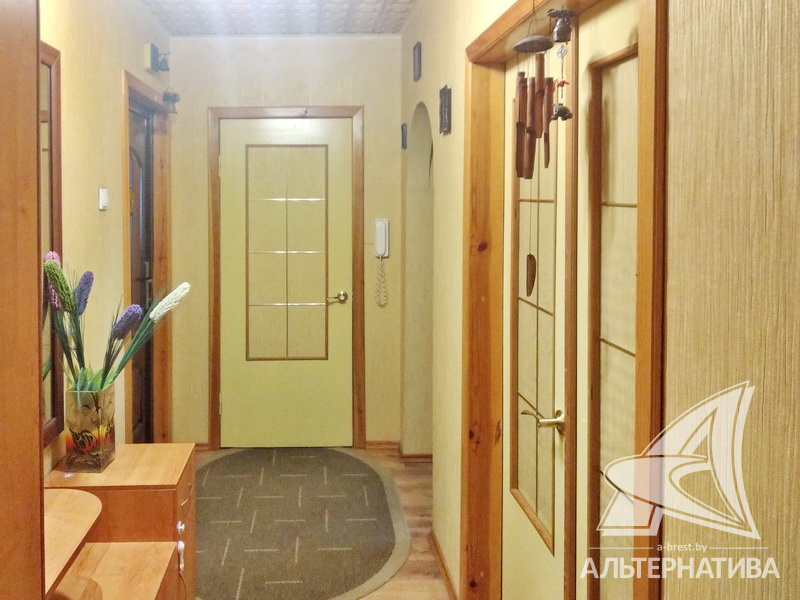 2-комнатная квартира, г. Брест, ул. Дубровская, 1989 г.п., 2 / 5 панель, 52,2 / 50,0 / 29,6 / 7,5, санузел раздельный, лоджия застеклена, потолки - снежка, одноуровневые (2,50 м), стеклопакеты, полы - ламинат (положен на ДСП), в санузле заменена сантехника, акриловая ванна, заменены трубы (пластик), инсталляция, входная дверь металлическая, стены оклеены обоями, телефон, домофон. Кухонный гарнитур, варочная поверхность, духовой шкаф, остальное по договоренности. Квартира с хорошим ремонтом. Все окна выходят во двор. Во дворе парковка для автомобилей. Дом расположен в глубине двора.