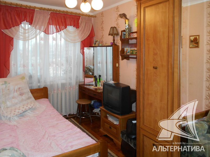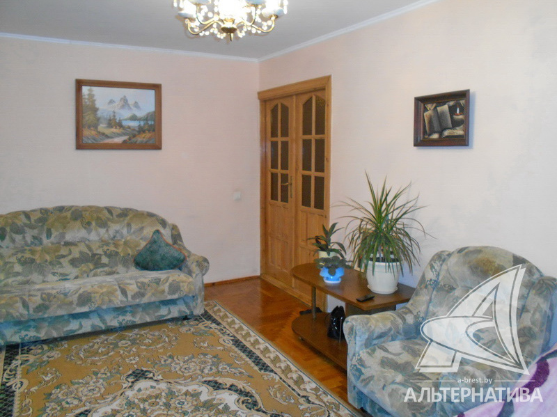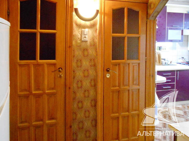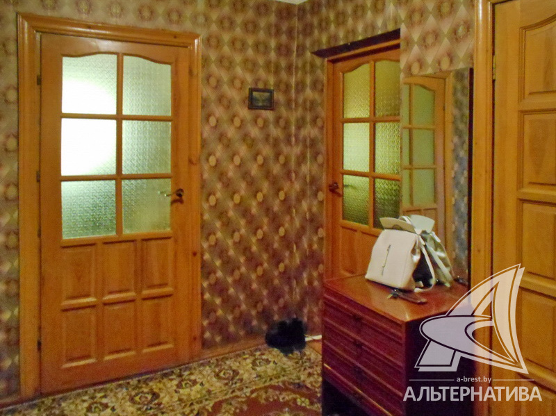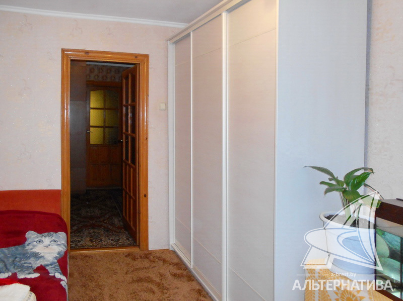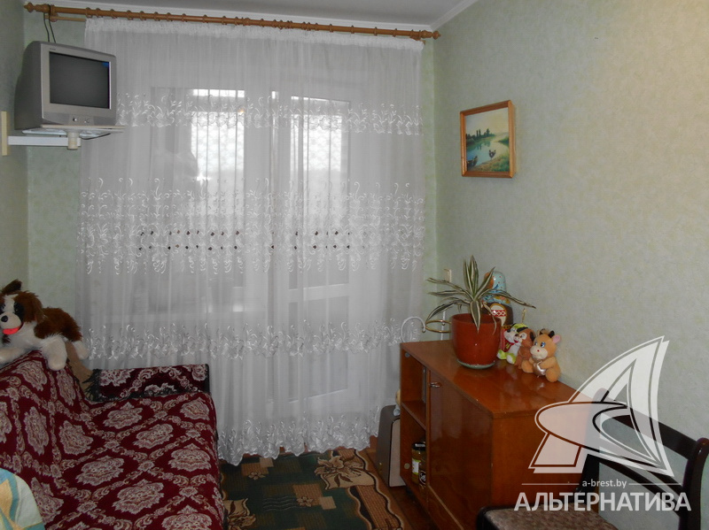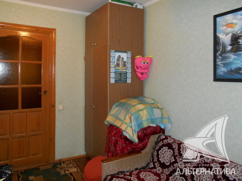 4-комнатная квартира, г. Брест, ул. Бауманская, 1982 г.п., 5 / 5 кирпич, 69,8 / 67,0 / 44,3 / 8,4, санузел раздельный, подвал, лоджия застеклена, потолки - снежка (2,60 м), однокамерные стеклопакеты, полы - паркет и линолеум (кухня, коридор) (положены на доску), в санузле современная плитка, чугунная ванна, межкомнатные двери - массив, входная дверь двойная - металлическая и деревянная, стены оклеены обоями, телефон, домофон. Кухонный гарнитур, остальное по договоренности. В квартире частично произведен ремонт. Квартира расположена на две стороны, окна жилых комнат выходят во двор. Тамбур на две квартиры. Произведен ремонт крыши.