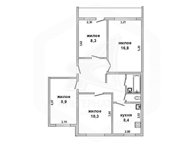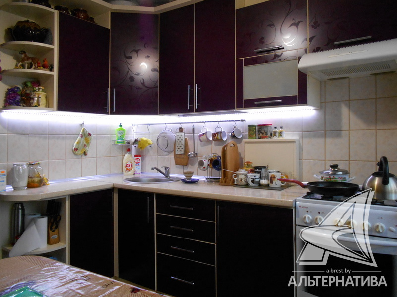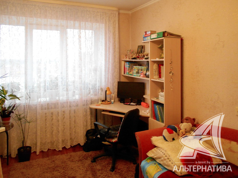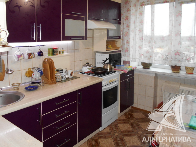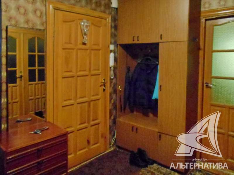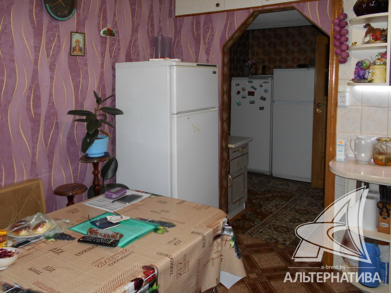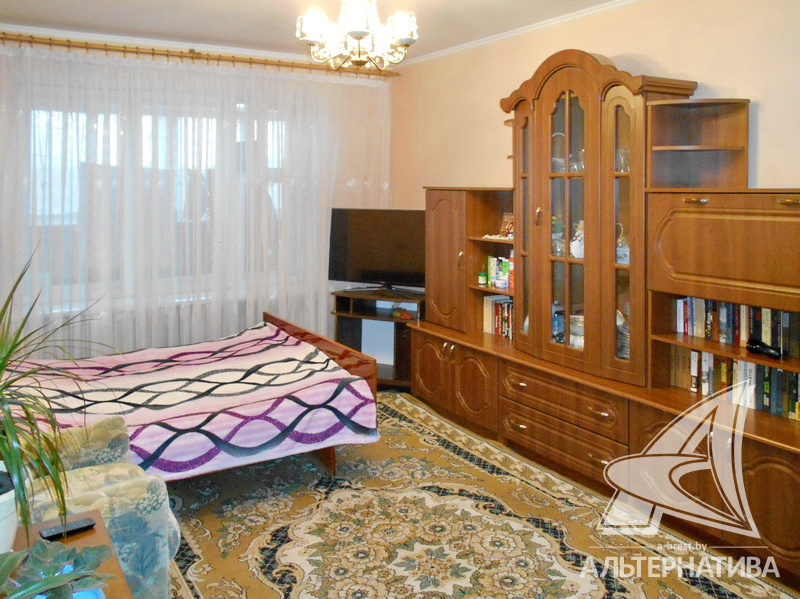 4-комнатная квартира, г. Брест, ул. Бауманская, 1982 г.п., 5 / 5 кирпич, 69,8 / 67,0 / 44,3 / 8,4, санузел раздельный, подвал, лоджия застеклена, потолки - снежка (2,60 м), однокамерные стеклопакеты, полы - паркет и линолеум (кухня, коридор) (положены на доску), в санузле современная плитка, чугунная ванна, межкомнатные двери - массив, входная дверь двойная - металлическая и деревянная, стены оклеены обоями, телефон, домофон. Кухонный гарнитур, остальное по договоренности. В квартире частично произведен ремонт. Квартира расположена на две стороны, окна жилых комнат выходят во двор. Тамбур на две квартиры. Произведен ремонт крыши.