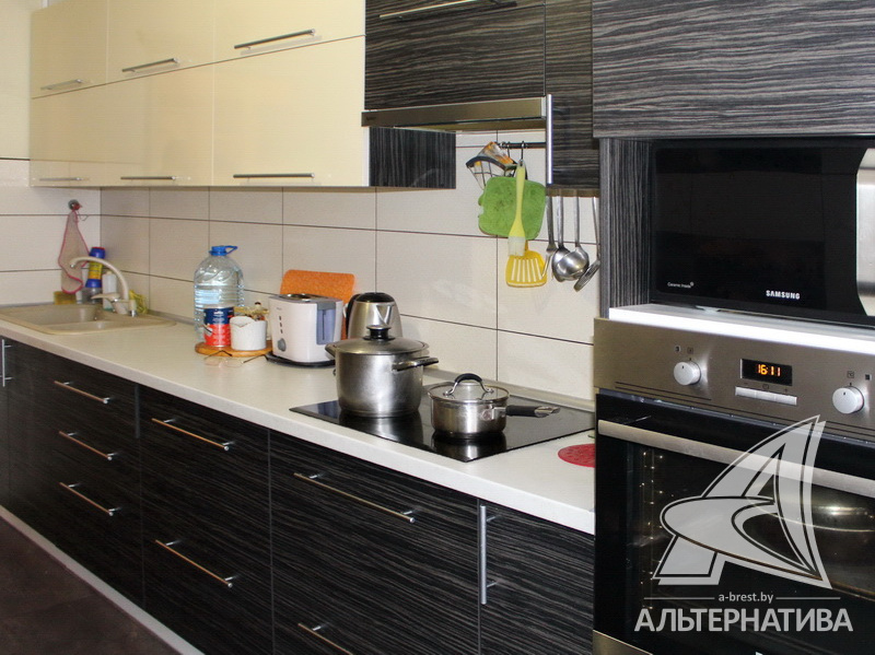 3-комнатная квартира, г. Брест, ул. Октябрьской Революции, 2011 г.п., 3 / 16 ж/б каркас + блок + кирпич, 92,1 / 92,1 / 56,9 / 11,5, санузел раздельный, потолки - подвесные и натяжные, стеклопакеты, полы - дубовый паркет (французский), итальянская плитка в санузле, импортная сантехника, межкомнатные двери - массив, входная дверь металлическая, телефон, домофон. Встроенный кухонный гарнитур, шкаф-купе. Квартира с индивидуальными дизайнерскими решениями, использованы материалы высочайшего качества.