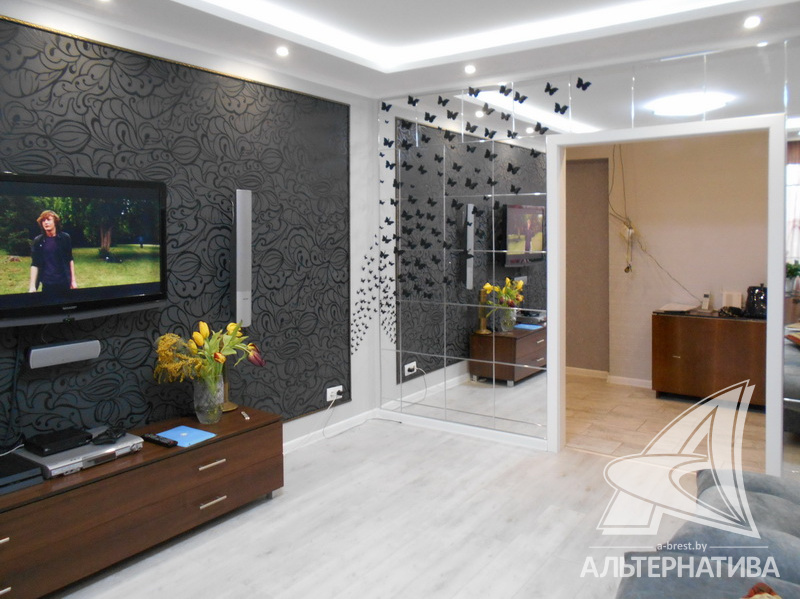 3-комнатная квартира, г. Брест, ул. Суворова, 1989 г.п., 3 / 9 панель, 69,3 / 66,5 / 41,7 / 9,2, санузел раздельный, лоджия и балкон застеклены, потолки - натяжные с подсветкой (2,55 м), стеклопакеты (пятикамерные), полы - ламинат и плитка с подогревом, современная плитка в санузле, деревянные межкомнатные двери, телефон, домофон. Кухонный гарнитур, духовой шкаф, вытяжка, посудомоечная машина, корпусная мебель в детской, шкаф. Квартира с индивидуальными дизайнерскими решениями.