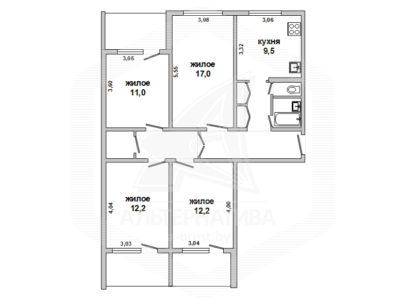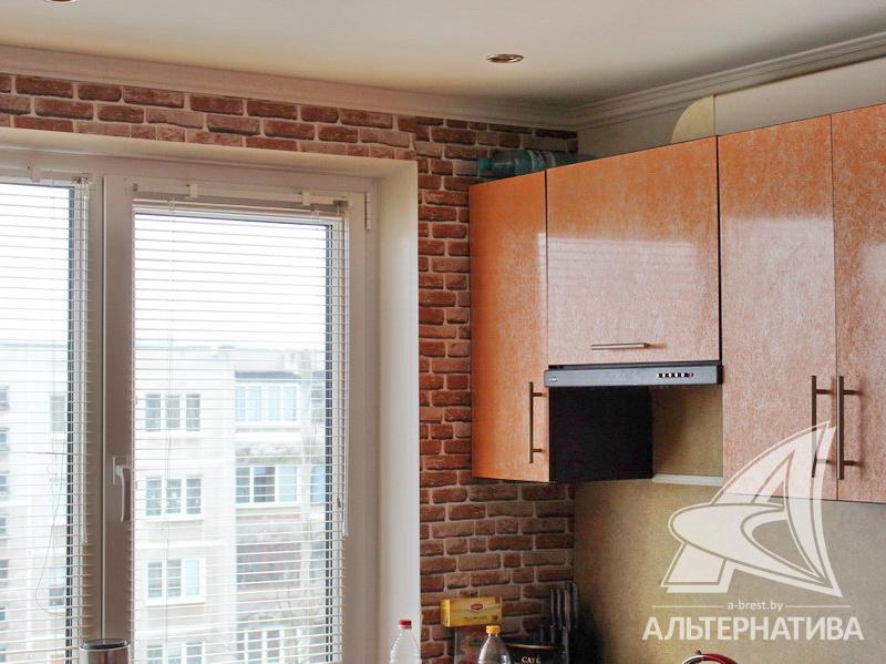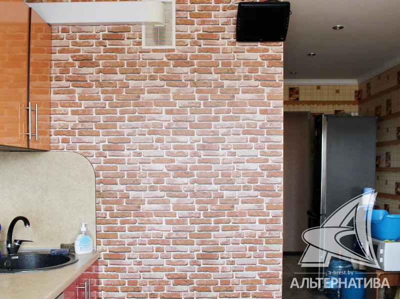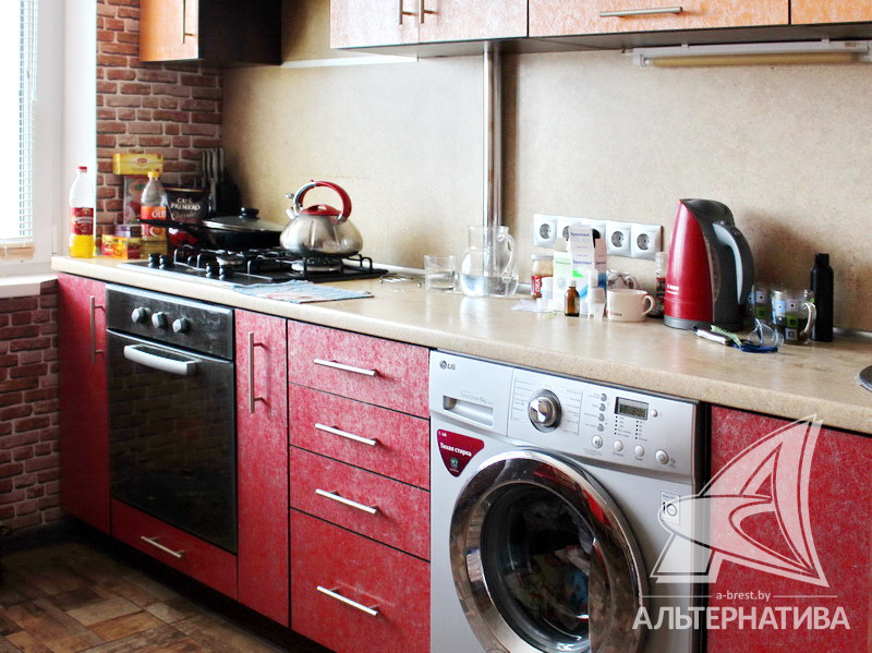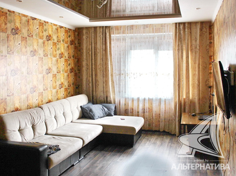 4-комнатная квартира, г. Брест, ул. Краснознаменная, 1977 г.п., 5 / 9 панель, 88,3 / 81,0 / 52,4 / 9,5, санузел раздельный, три лоджии застеклены, подвал, потолки - подвесные и снежка (2,5 м), стеклопакеты, полы - ламинат и плитка, новая плитка и сантехника, новые трубы и проводка, межкомнатные двери - шпон, входная дверь металлическая, телефон, домофон. Встроенный кухонный гарнитур. Квартира с хорошим ремонтом.
