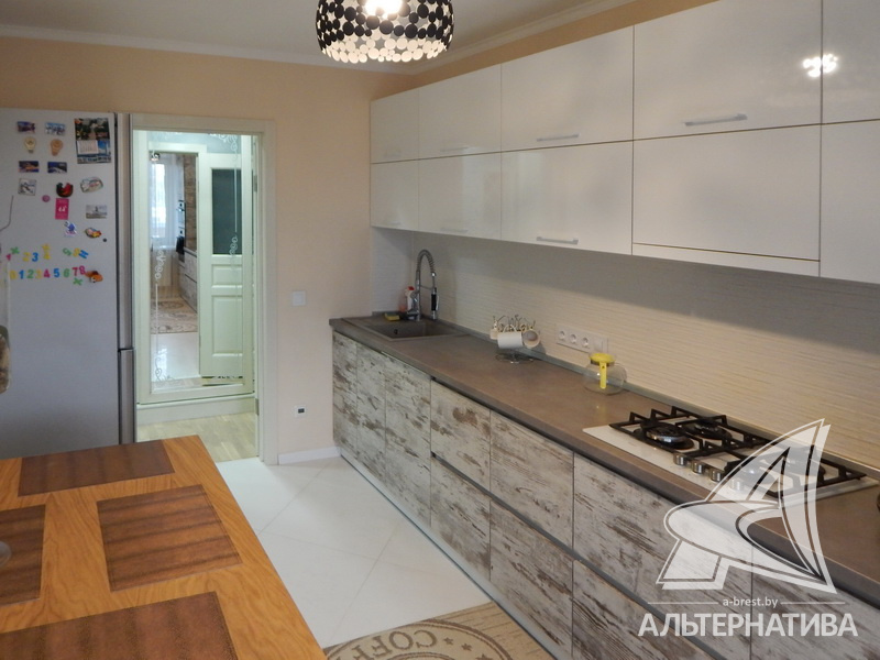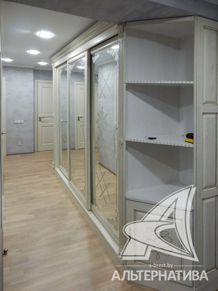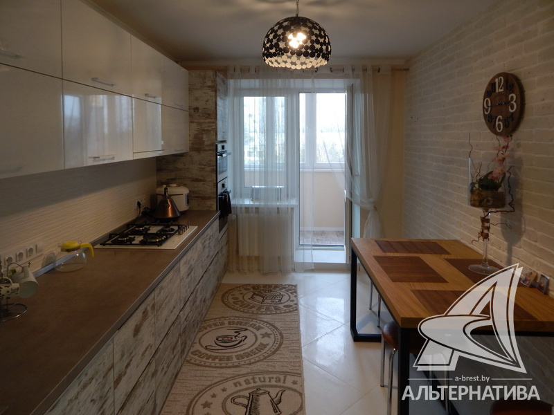 3-комнатная квартира, г. Брест, ул. Гоголя, 2015 г.п., 5 / 10 кирпич, 71,3 / 66,2 / 39,5 / 10,5, санузел раздельный, два балкона застеклены и утеплены. В квартире выполнен хороший ремонт: стеклопакеты, полы - паркетная доска (дуб), потолки - натяжные, снежка и многоуровневые с светодиодной подсветкой; стены - декоративная штукатурка, обои и декоративный кирпич; современная керамическая плитка в санузле, установлен бойлер на 30 л, подогрев пола на кухне и в ванной, межкомнатные двери - массив сосны, входная дверь металлическая, телефон, оптоволокно, домофон. В подарок покупателю остается встроенный кухонный гарнитур, мойка из керамогранита, диодная подсветка по всей длине, встроенная бытовая техника (микроволновая печь, духовой шкаф, варочная панель – Whirlpool, посудомоечная машина - Electrolux), шкаф-купе из массива дуба, корпусная мебель (фурнитура blum, доводчики). Современная квартира в новом доме в центре города.