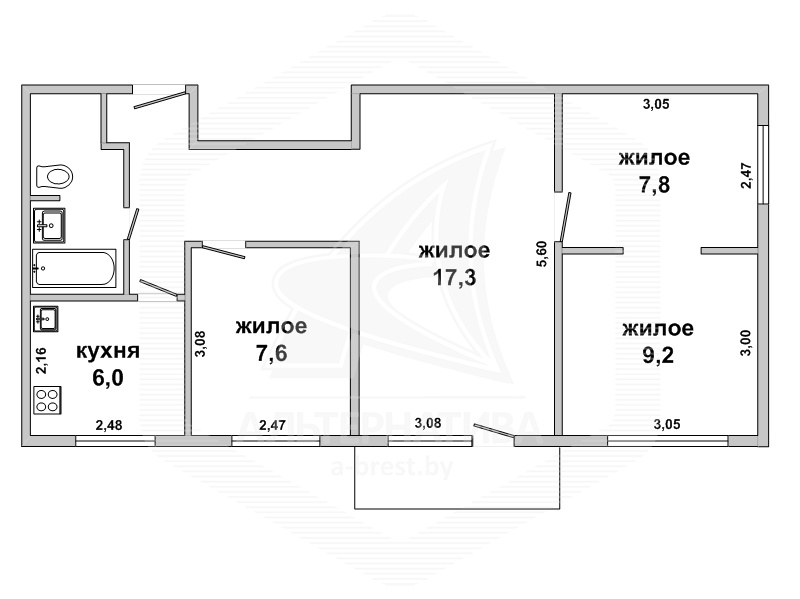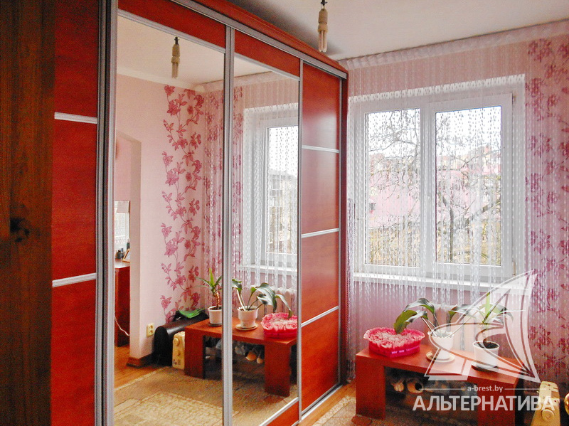 4-комнатная квартира, г. Брест, ул. Брестских дивизий, 1975 г.п., 5 / 5 панель, 59,2 / 58,2 / 41,8 / 6,0, санузел совмещенный, балкон застеклен, подвал, потолки - снежка (2,5 м), полы - ламинат и современная плитка, деревянные межкомнатные двери, входная дверь металлическая, телефон, домофон. Встроенный кухонный гарнитур, шкаф-купе, корпусная мебель в спальне и детской. Квартира с хорошим ремонтом.