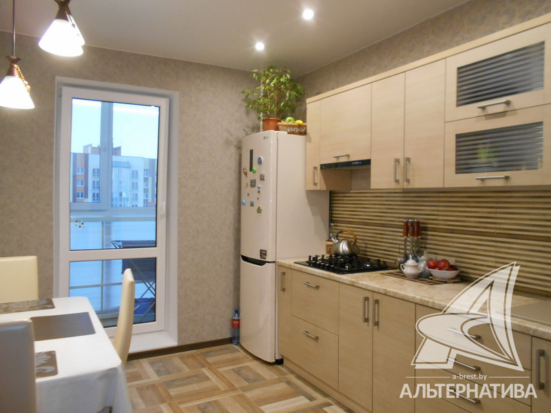 2-комнатная квартира, г. Брест, ул. Луцкая, 2016 г.п., 8 / 10 панель, 65,3 / 63,5 / 37,9 / 10,6, санузел раздельный, лоджия застеклена, потолки - натяжные и разноуровневые, стеклопакеты, полы - плитка и ламинат, новая плитка и сантехника, современные межкомнатные двери, входная дверь металлическая, телефон, домофон. Встроенный кухонный гарнитур, бытовая техника, холодильник. Квартира с индивидуальными дизайнерскими решениями.