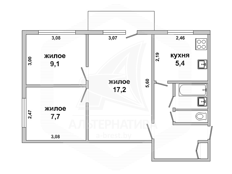 3-комнатная квартира, г. Брест, ул. Пионерская, 1967 г.п., 2 / 5 панель, 50,1 / 49,3 / 34,0 / 5,4, санузел раздельный, балкон не застеклен, подвал, потолки - снежка (2,5 м), полы - деревянные, современная плитка, новые трубы, новая сантехника, межкомнатные двери нового образца, входная дверь металлическая, телефон, домофон. Встроенный кухонный гарнитур, шкаф-купе. Квартира в жилом состоянии.