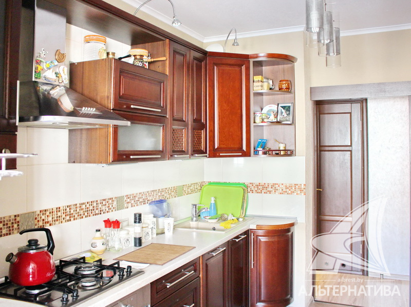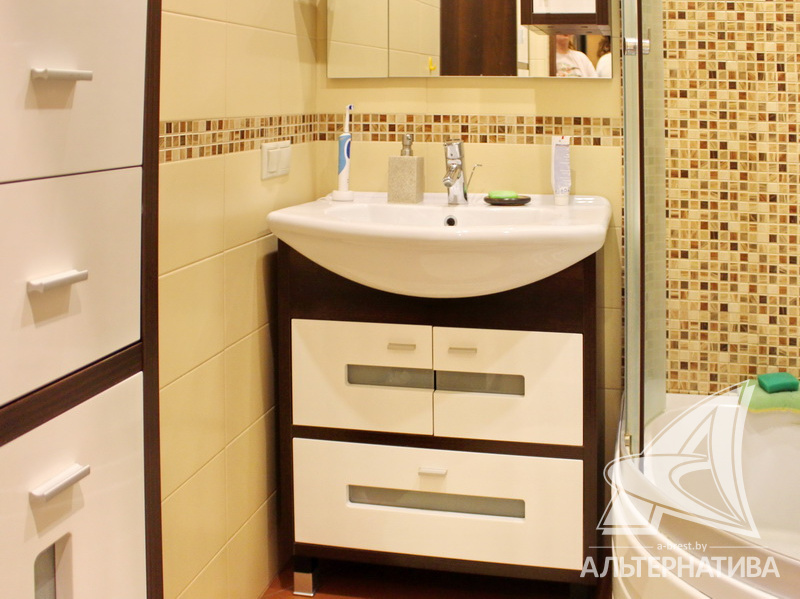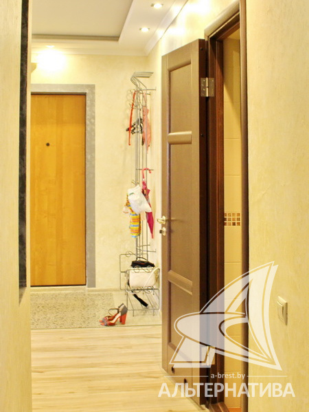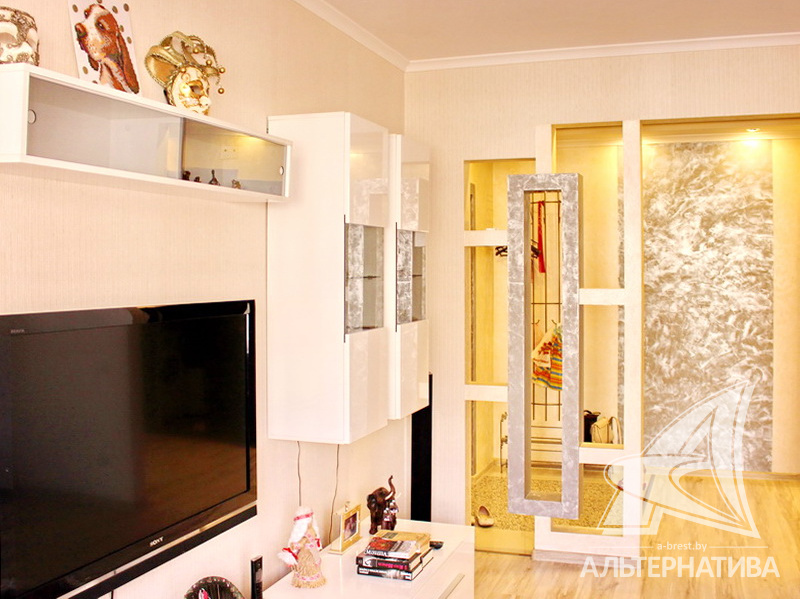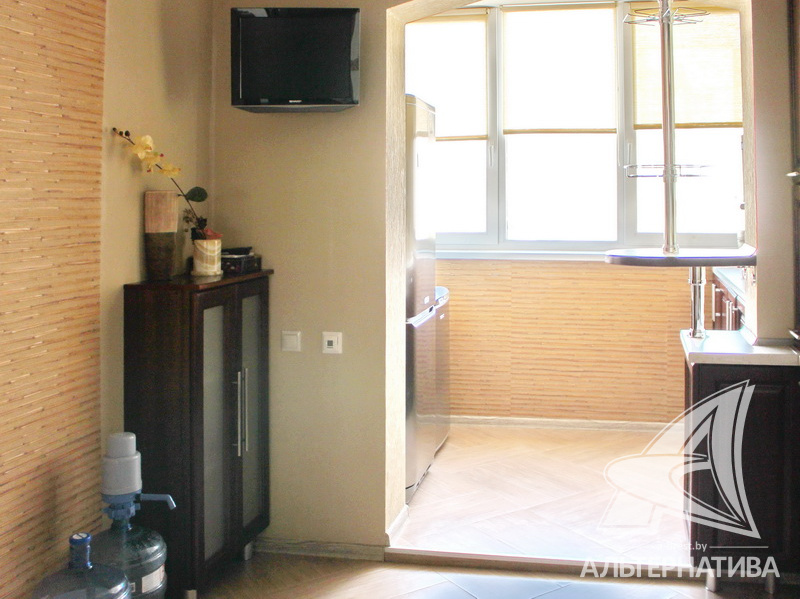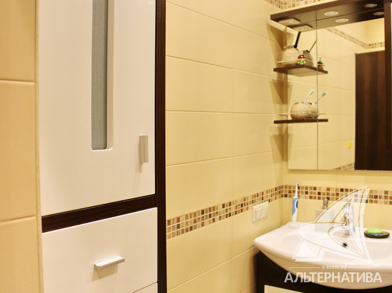 3-комнатная квартира, г. Брест, ул. Суворова, 2008 г.п., 8 / 9 панель, 72,3 / 66,9 / 41,6 / 9,2, санузел раздельный, две лоджии застеклены, стеклопакеты, потолки - снежка, полы - ламинат и плитка, теплый пол на кухне, сантехника Roca, трубы - медь, межкомнатные двери - шпон, входная дверь металлическая. Кухонный гарнитур, шкаф-купе, мебель в спальне, детской комнате, ванной. Квартира с индивидуальными дизайнерскими решениями.