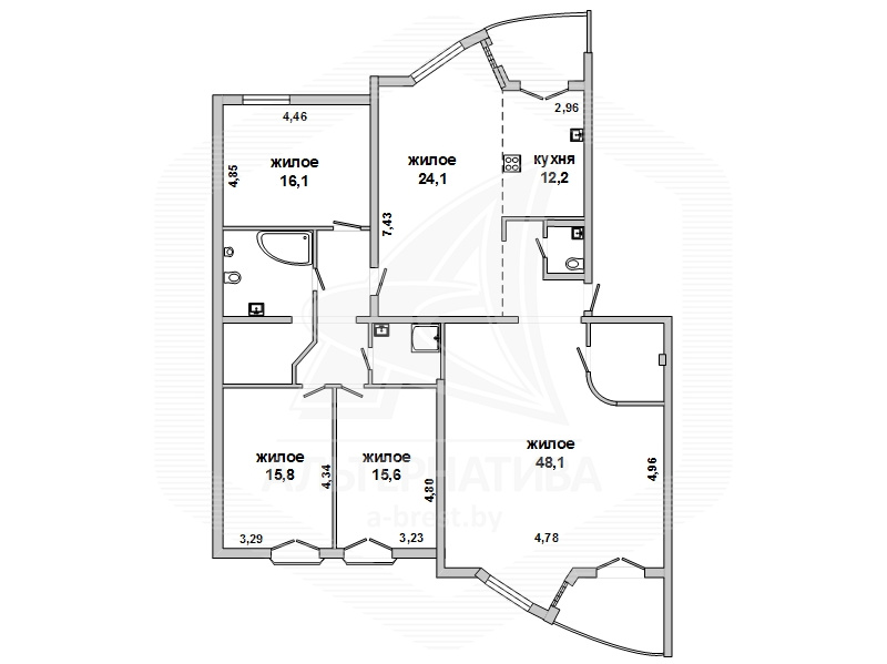 5-комнатная квартира, г. Брест, ул. Энгельса, 2002 г.п., 1 / 8 кирпич, 182,4 / 177,0 / 127,0 / 12,2, 2 санузел, две лоджии застеклены, потолки - двухуровневые и снежка (2,75 м), стеклопакеты (Польша), полы - паркет (ясень), в ванной итальянская плитка, польская сантехника, межкомнатные двери - массив (ясень), входная дверь металлическая, телефон, домофон. Немецкая кухня и бытовая техника (духовой шкаф, кофеварка, посудомоечная машина, холодильник). Квартира с индивидуальными дизайнерскими решениями.