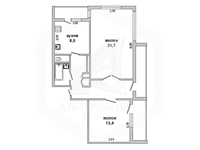| Общая площадь | 60.1 м² |