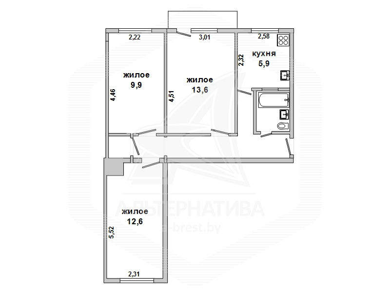 3-комнатная квартира, г. Брест, пр-т Машерова, 1962 г.п., 4 / 5 кирпич, 55,6 / 54,8 / 36,1 / 5,9, санузел совмещенный, балкон застеклен (алюминиевые раздвижные рамы), натяжные потолки (2,46 м), стеклопакеты, полы - дерево, ламинат, новая плитка и сантехника, межкомнатные двери - шпон, входная дверь металлическая. Мебель по договоренности. Квартира с хорошим ремонтом. Капитальный ремонт дома был произведен в 2012 году, расположение на южной стороне, благоустроенный двор (магазин, сад, школа).