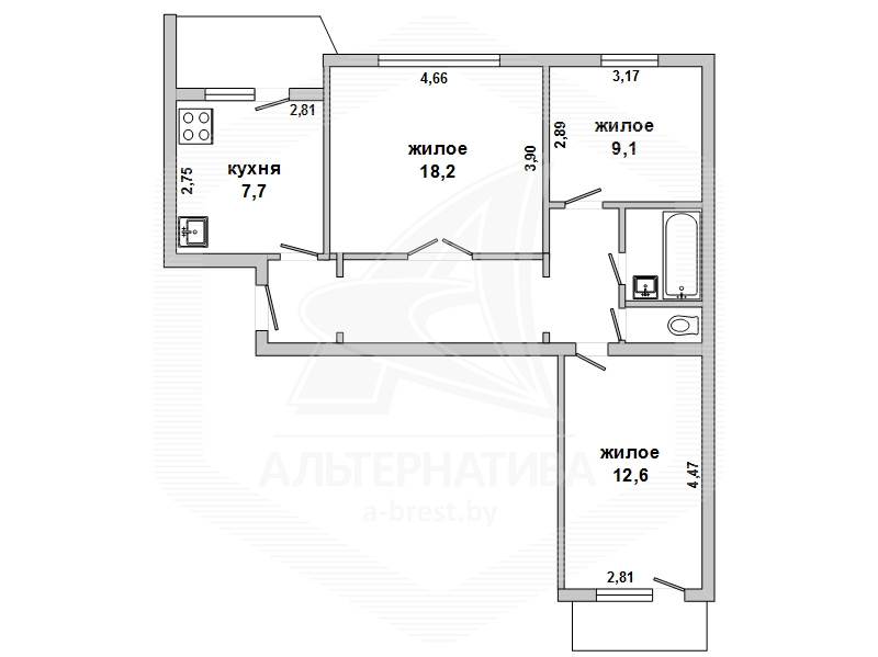 3-комнатная квартира, г. Брест, ул. Московская, 1975 г.п., 6 / 9 кирпич, 68,4 / 65,2 / 39,9 / 7,7, санузел раздельный, две лоджии застеклены, подвал, потолки - 2,51 м, стеклопакеты, полы - ламинат, новая плитка и сантехника, деревянные межкомнатные двери, входная дверь металлическая, телефон, домофон. Встроенный кухонный гарнитур, шкаф-купе, корпусная и мягкая мебель. Квартира с хорошим ремонтом.