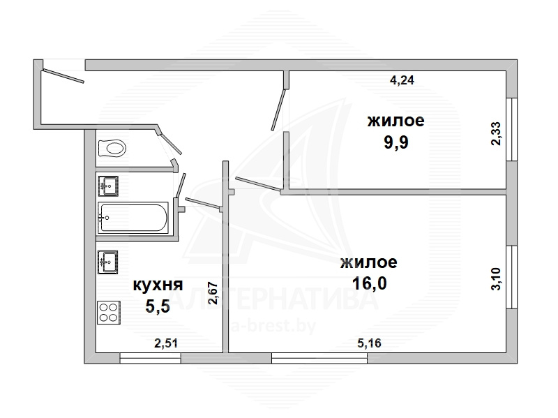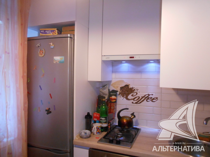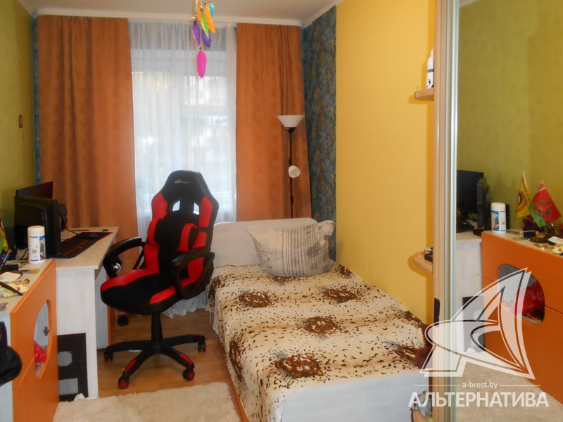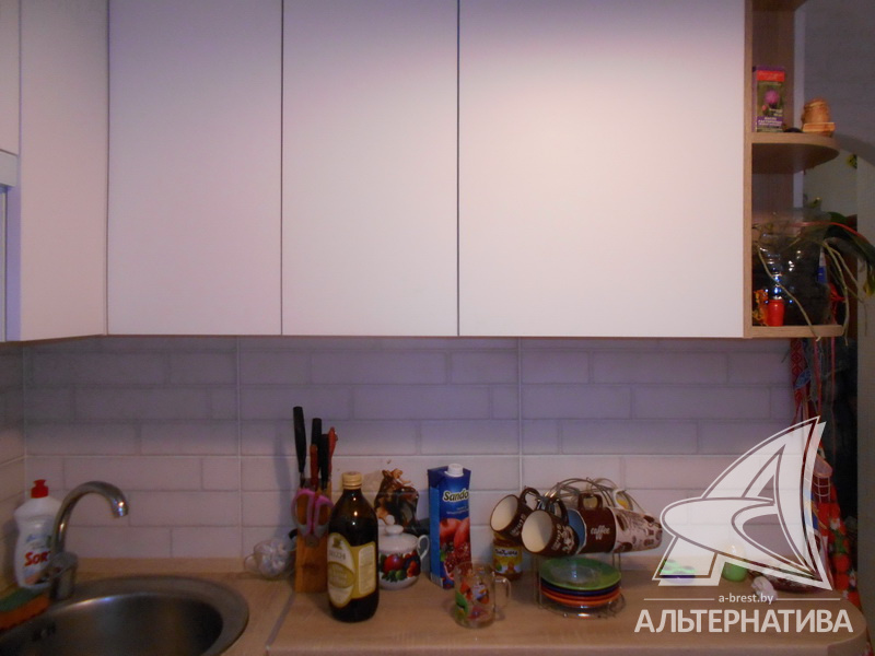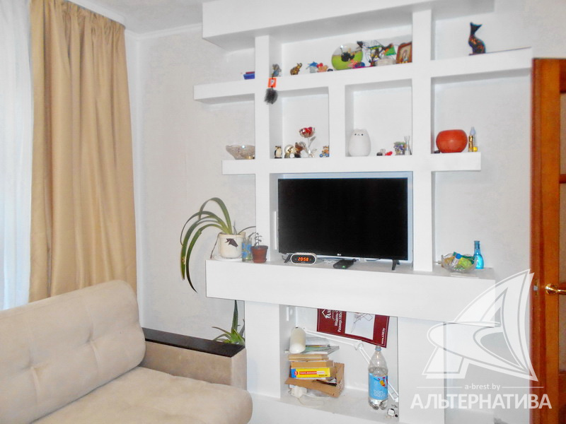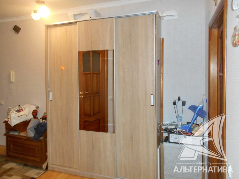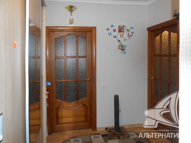 2-комнатная квартира, г. Брест, ул. Интернациональная, 1965г.п., 1 / 5 кирпич, 42,7 / 42,7 / 25,9 / 5,5, санузел раздельный, подвал, деревянные стеклопакеты, межкомнатные двери - массив, входная дверь металлическая, потолки - снежка (2,52 м), полы - ламинат (положен на доску), стены оклеены обоями, в санузле современная плитка, заменена сантехника, заменен полотенцесушитель, чугунная ванна, заменены сантехнические трубы (пластик), телефон, домофон. Встроенный кухонный гарнитур, варочная поверхность, духовой шкаф, вытяжка. Шкаф-купе в детской. Квартира с хорошим ремонтом. Окна выходят на зеленую зону. Чистый подъезд. Дом расположен в глубине двора.