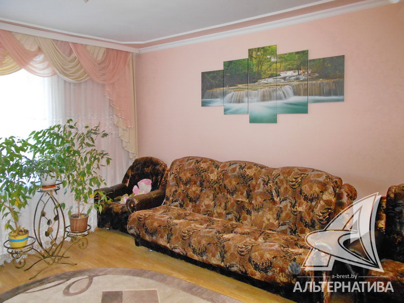 4-комнатная квартира, г. Брест, ул. 28 Июля, 1990 г.п., 6 / 9 кирпич, 83,8 / 80,3 / 49,5 / 8,2, санузел раздельный, подвал, две лоджии застеклены (стеклопакеты), межкомнатные двери - массив, входная дверь металлическая, деревянные стеклопакеты, потолки - снежка и натяжные (комната), полы - доска крашеная, ДСП (коридор), ламинат (зал, комната), плитка (кухня), стены оклеены обоями, чугунная ванна, новый электросчетчик, телефон, домофон. Кухонный гарнитур, шкафы в коридоре и гардеробной, корпусная мебель в комнате (стол и полка). Квартира в жилом состоянии. Квартира расположена на две стороны. Чистый подъезд. Один пассажирский лифт. Во дворе игровая детская площадка. Дом расположен в глубине двора.
