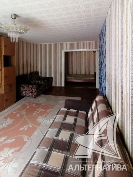 1-комнатная квартира, г. Брест, ул. МОПРа, 1979 г.п., 4 / 5 панель, 41,6 / 41,6 / 21,4 / 9,7, санузел раздельный, деревянные окна, деревянные межкомнатные двери, входная дверь деревянная, потолки - оклеены обоями (2,50 м), полы - паркет и линолеум (кухня), стены оклеены обоями, акриловая ванна, новый электросчетчик, домофон. Кухонный гарнитур, корпусная мебель в комнате. Квартира в жилом состоянии. Окна жилых комнат выходят во двор.