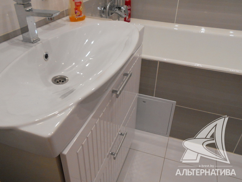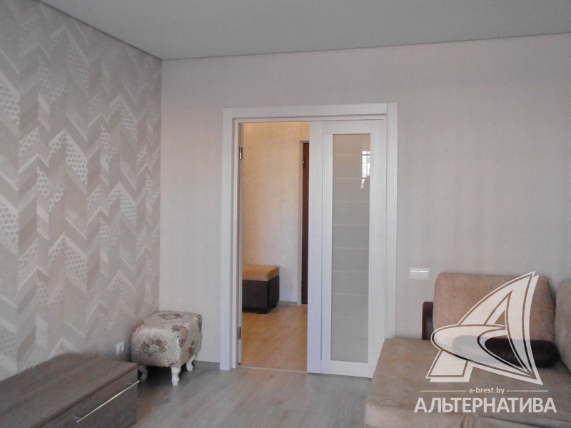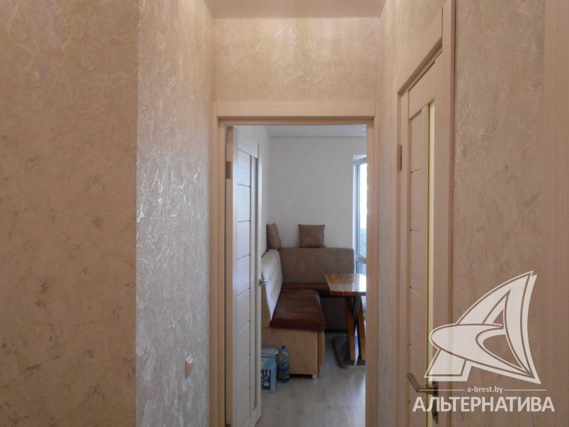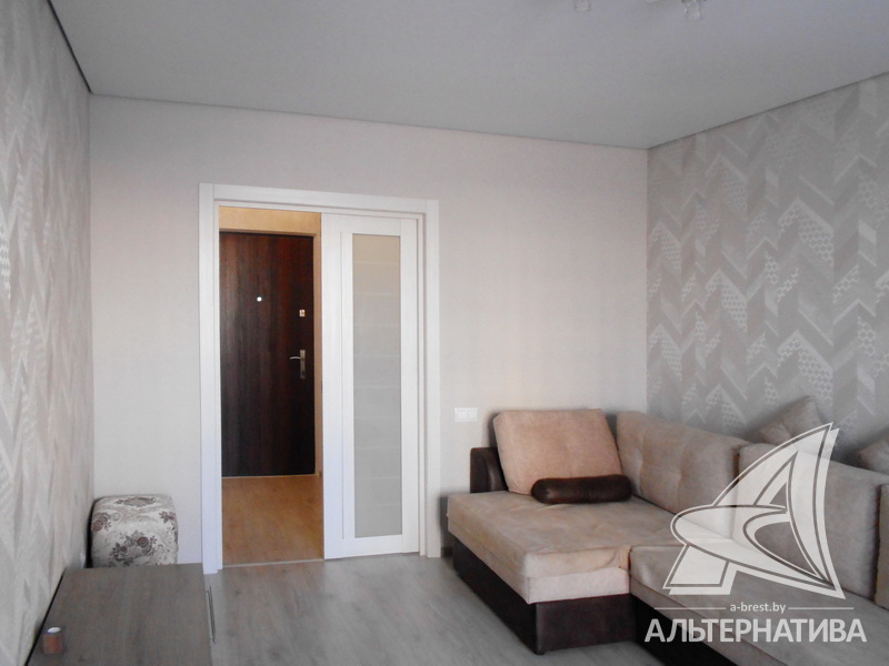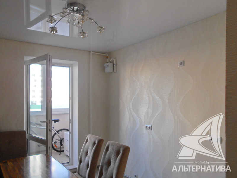 1-комнатная квартира, г. Брест, ул. Махновича, 2015 г.п., 2 / 10 панель, 44,7 / 42,0 / 17,1 / 10,0, санузел раздельный, лоджия застеклена, стеклопакеты, межкомнатные двери - экошпон, входная дверь металлическая, натяжные потолки с интересной системой освещения - глянец (в кухне, коридоре и санузле) и сатин (в комнате), полы - ламинат (положен на стяжку), подогрев пола на лоджии, стены оклеены обоями, в санузле современная плитка, заменена сантехника, заменен полотенцесушитель, заменены сантехнические трубы, проведена новая электропроводка, карнизы, гардины, светильники, мебель в ванной комнате, домофон. Квартира с хорошим ремонтом. Чистый подъезд. Тамбур на две квартиры. На площадке имеется закрытое место для колясок и велосипедов. Дом оборудован пандусом. Во дворе игровая детская площадка, парковка для автомобилей. Один пассажирский лифт.