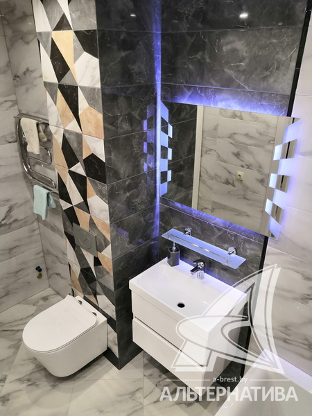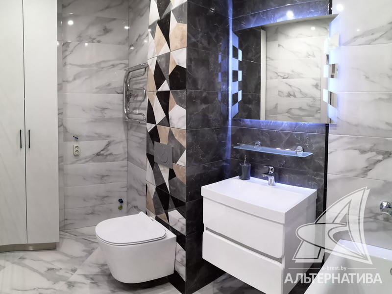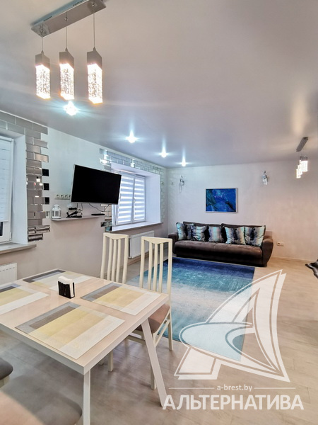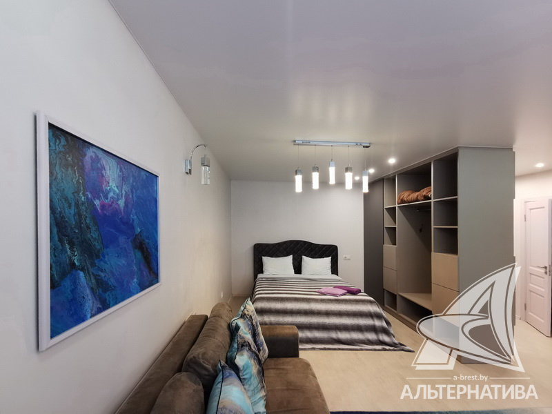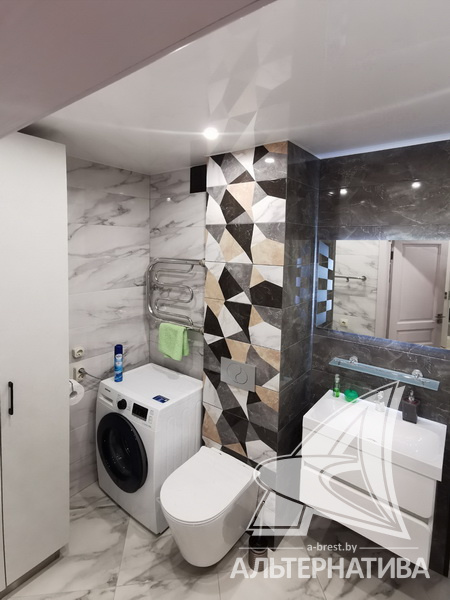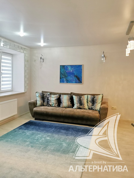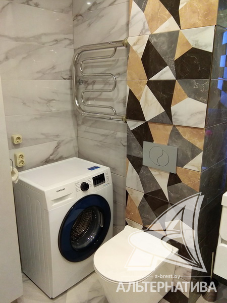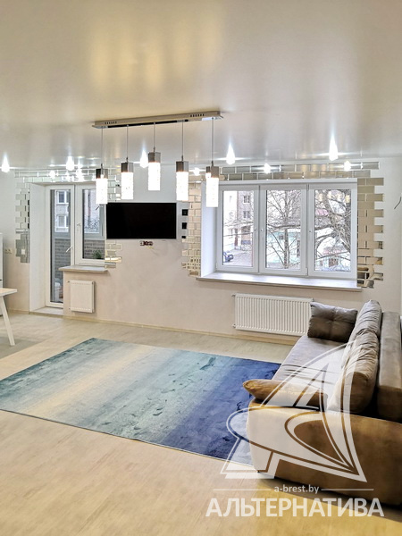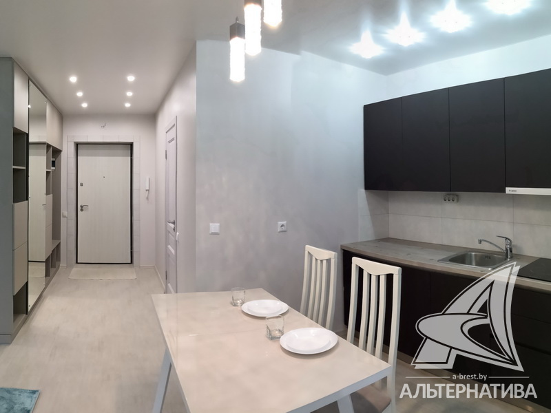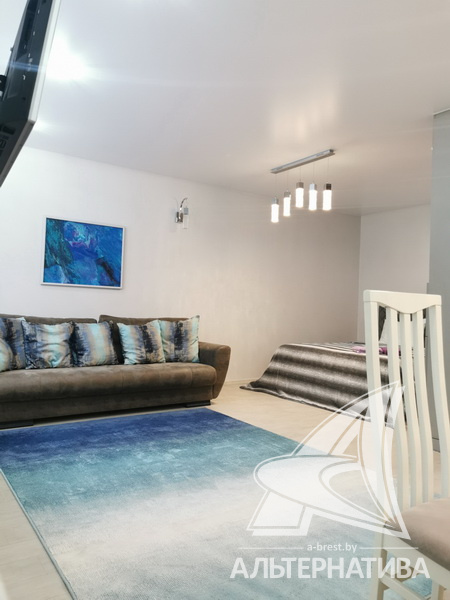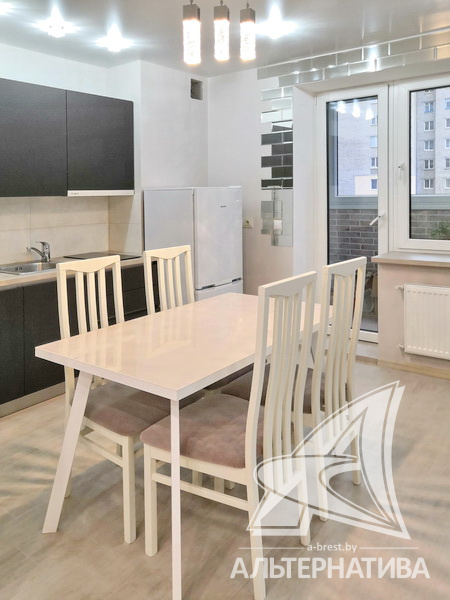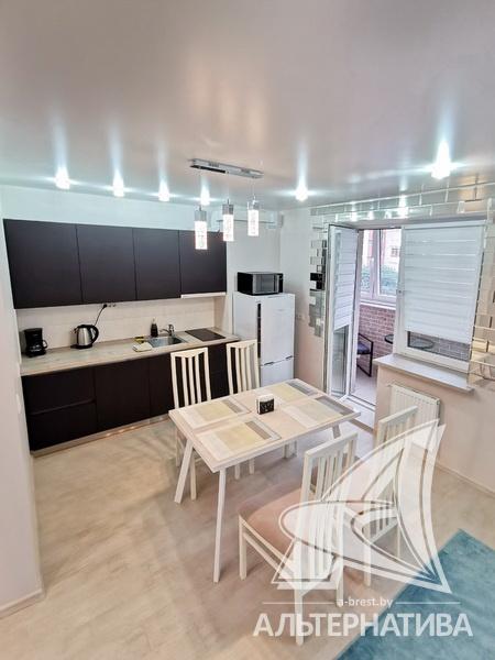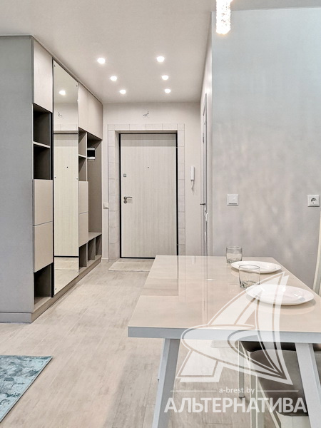 1-комнатная квартира, г. Брест, ул. Гоголя, 2019 г.п., 3 / 10 кирпич, 42,2 / 39,8 / 35,1 / -, санузел совмещенный, лоджия застеклена, стеклопакеты, межкомнатные двери - массив (сосна), входная дверь металлическая, натяжные потолки, полы - плитка, стены - декоративная окраска, телефон, домофон, система видеонаблюдения. Кухонный гарнитур, варочная поверхность, вытяжка, холодильник "Атлант", стиральная машина "Samsung", встроенные шкафы. Квартира с хорошим ремонтом. Все окна выходят во двор. Дом оборудован пандусом. Во дворе игровая детская площадка, парковка для автомобилей. Пассажирский и грузовой лифты.