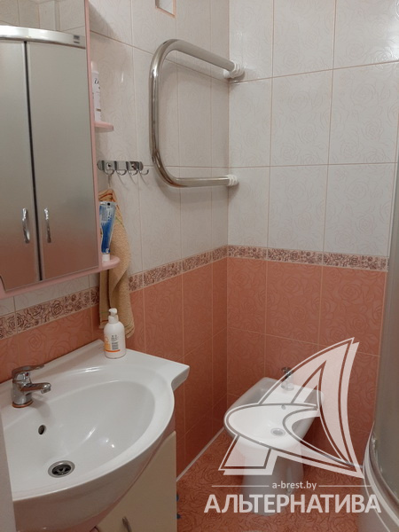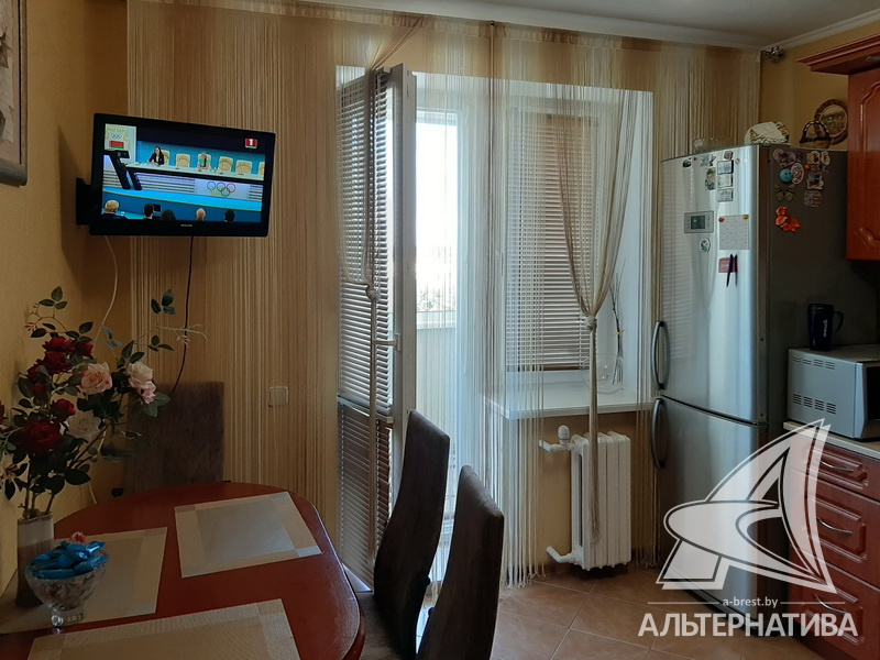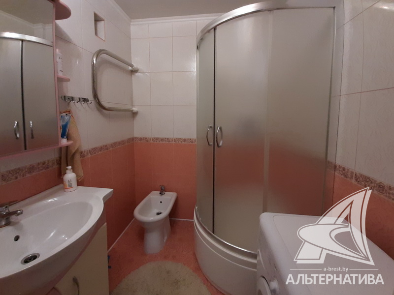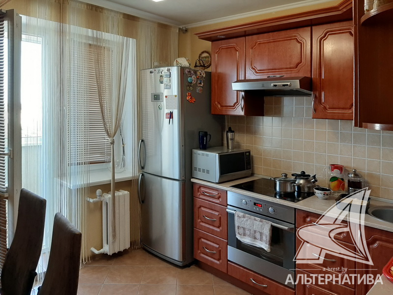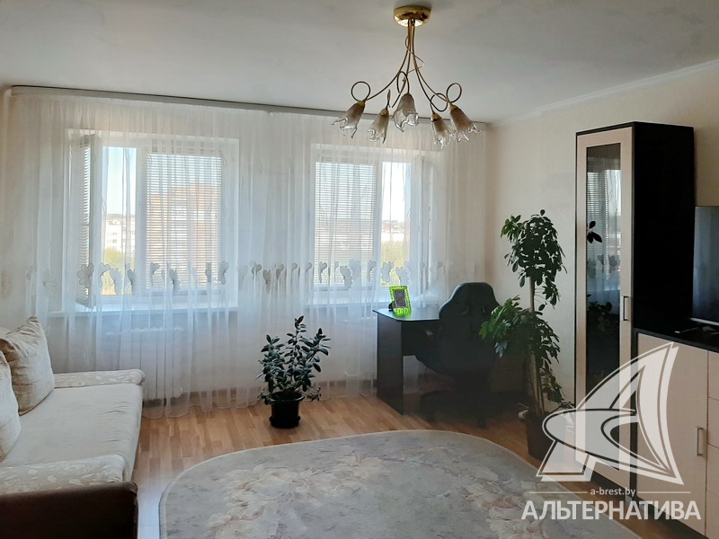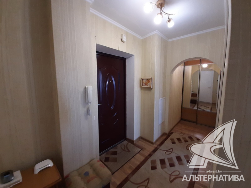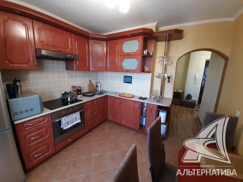 1-комнатная квартира, г. Брест, ул. Мошенского, 2008 г.п., 8 / 9 блок, 45,5 / 43,4 / 22,0 / 8,8, санузел раздельный, лоджия застеклена, стеклопакеты, межкомнатные двери - МДФ, входная дверь металлическая, потолки - снежка (2,51 м), полы - плитка (в кухне) и ламинат (положен на стяжку), стены оклеены обоями, в санузле современная плитка, заменена сантехника, заменен полотенцесушитель, заменены сантехнические трубы, душевая кабина, телефон, домофон. Кухонный гарнитур, варочная поверхность, вытяжка, шкаф-купе в прихожей. Квартира с хорошим ремонтом. Чистый подъезд. Дом оборудован пандусом. Высокий цоколь. Пассажирский и грузовой лифты.