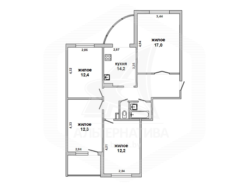 4-комнатная квартира, г. Брест, ул. Сябровская, 1994 г.п., 1 / 10 панель, 85,8 / 83,8 / 53,9 / 13,8, санузел раздельный, лоджия застеклена, деревянные стеклопакеты, межкомнатные двери – экошпон, входная дверь металлическая, потолки - снежка (2,50 м), полы - ламинат (положен на стяжку), стены оклеены обоями, в санузле современная плитка, телефон, домофон. Кухонный гарнитур. Квартира с хорошим ремонтом. Квартира расположена на две стороны. Высокий цоколь.