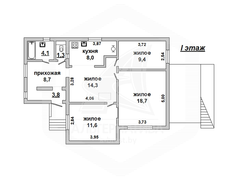 Квартира в блокированном жилом доме в г.Бресте. 1986 г.п. 2 этажа. Общ.СНБ - 101,1 кв.м, общ.- 79,9 кв.м, жил.- 39,7 кв.м, кух.- 8,0 кв.м. 3 комнаты, потолки - 2,65 м.