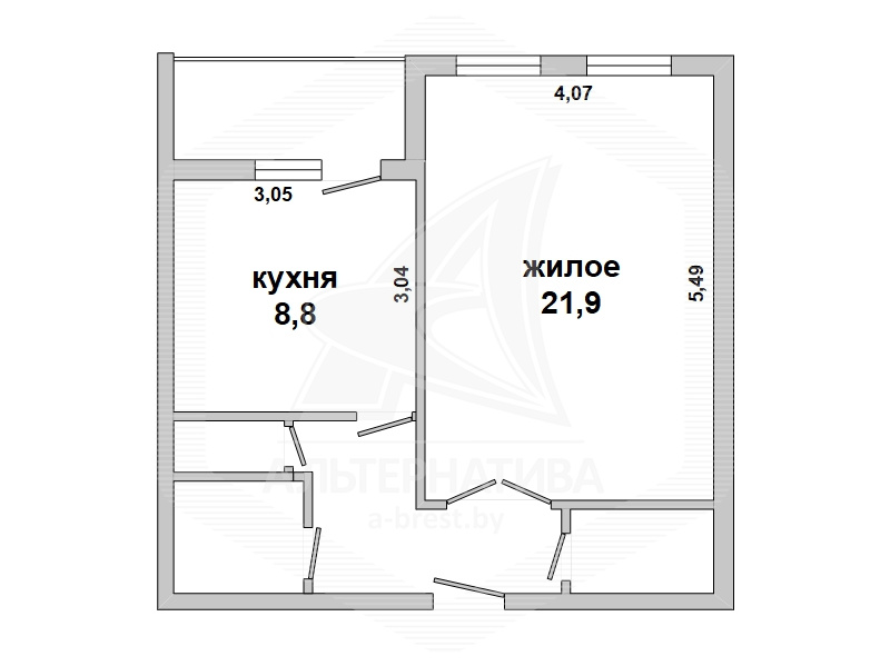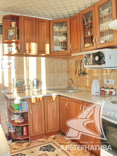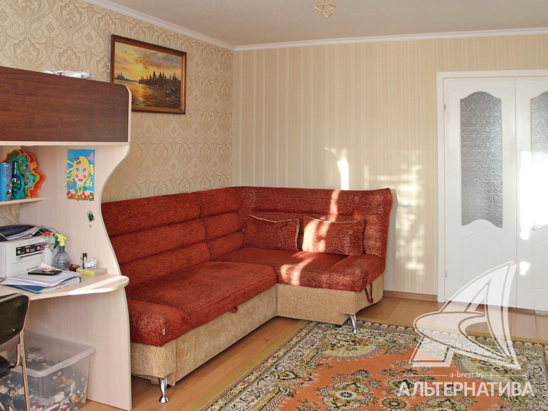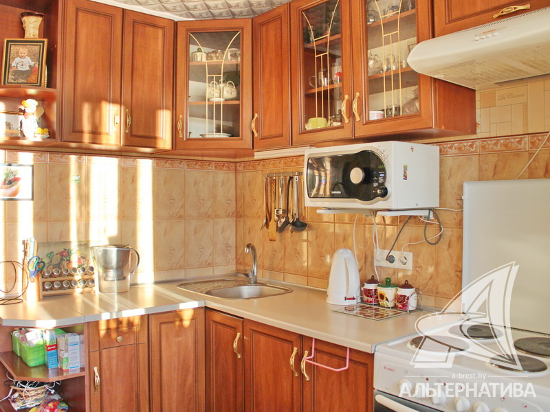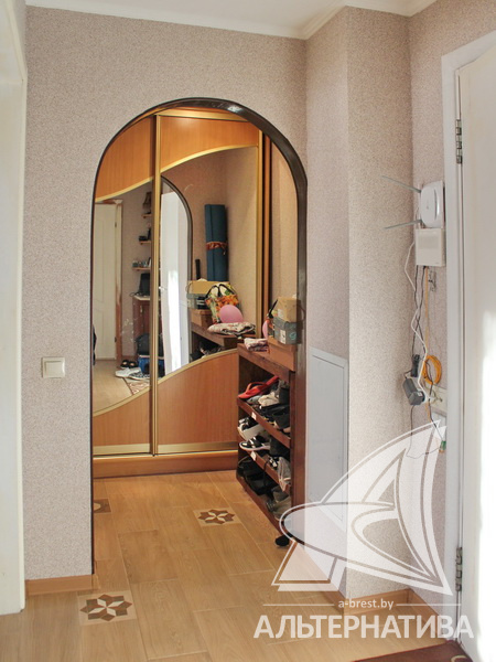 1-комнатная квартира, г. Брест, ул. Мошенского, 2008 г.п., 3 / 9 блок, 46,0 / 44,1 / 21,9 / 8,8, санузел раздельный, лоджия застеклена, стеклопакеты, межкомнатные двери - МДФ, входная дверь металлическая, потолки - снежка (коридор), оклеены обоями (кухня), одноуровневые (2,62 м), полы - ламинат, линолеум (кухня) и плитка (коридор) (положены на стяжку), стены оклеены обоями, в санузле современная плитка, чугунная ванна, телефон, домофон. Встроенный кухонный гарнитур, плита, вытяжка. Квартира в жилом состоянии. Чистый подъезд. Тамбур на семь квартир. На площадке имеется закрытое место для колясок и велосипедов. Во дворе игровая детская площадка, парковка для автомобилей.