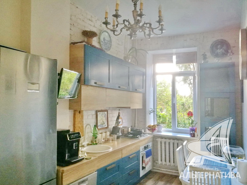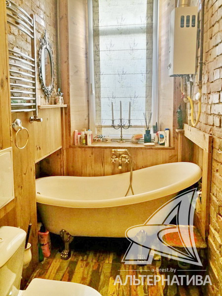 1-комнатная квартира, г. Брест, ул. Маяковского, 1930 г.п., 1 / 3 кирпич, 37,6 / 37,6 / 18,3 / 8,8, санузел совмещенный, подвал, стеклопакеты, межкомнатные двери - массив, входная дверь металлическая, натяжные потолки (3,40 м), декоративная отделка деревом, натуральный камень, в санузле современная плитка, заменен полотенцесушитель, заменены сантехнические трубы (Италия), газовая колонка в санузле, телефон. Встроенный кухонный гарнитур. Квартира с индивидуальными дизайнерскими решениями в стиле лофт. Все окна выходят во двор.