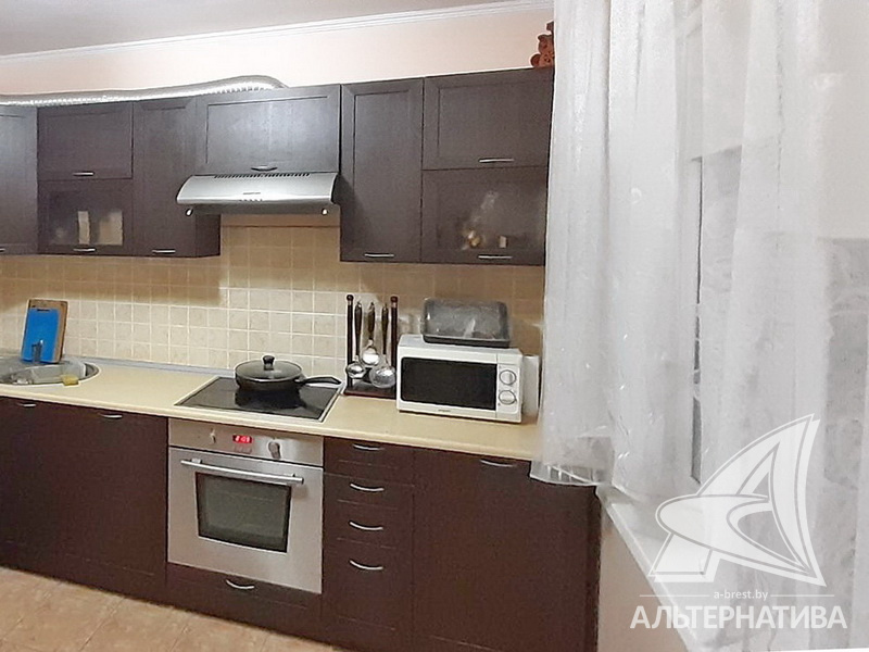 2-комнатная квартира, г. Брест, ул. Сябровская, 1993 г.п., 11 / 12 панель, 59,4 / 57,2 / 28,3 / 9,2, санузел раздельный, лоджия застеклена, стеклопакеты, межкомнатные двери - массив, потолки - снежка (2,54 м), полы - ламинат и плитка, стены оклеены обоями, в санузле современная плитка, телефон, домофон. Кухонный гарнитур, варочная поверхность, духовой шкаф, два шкафа-купе. Квартира с хорошим ремонтом. Два пассажирских лифта.