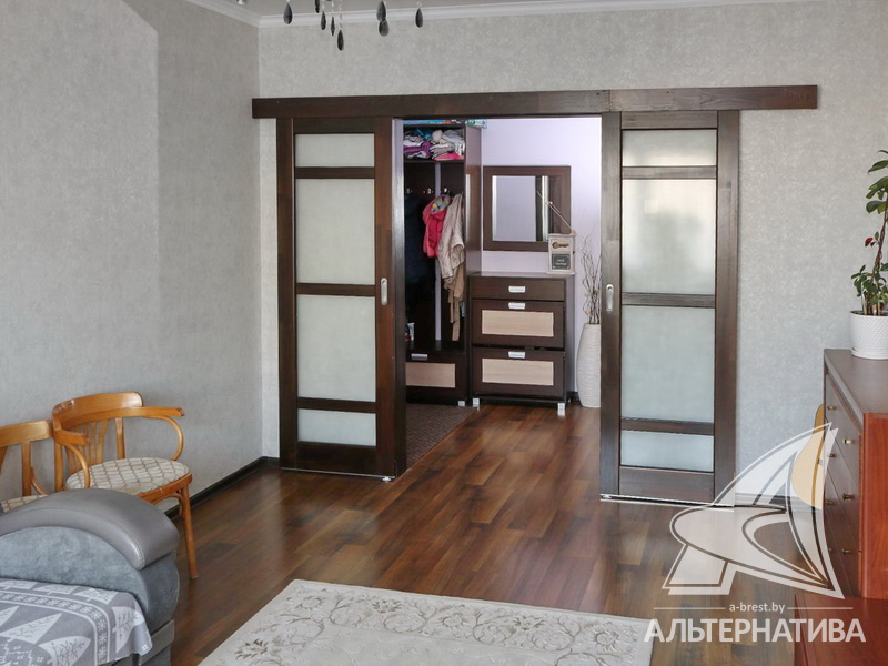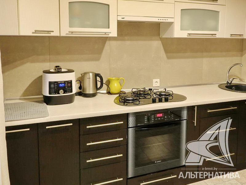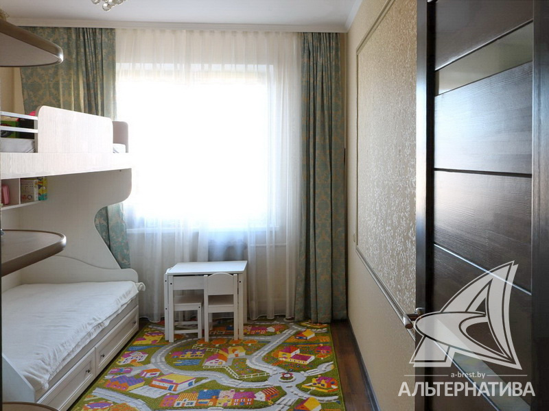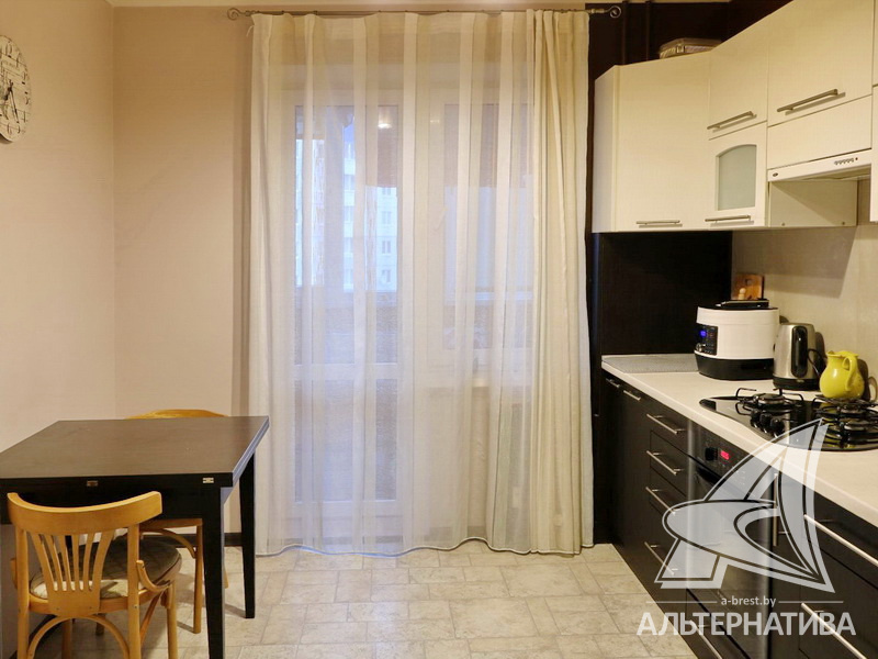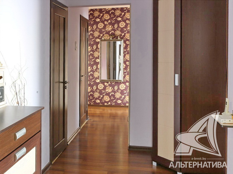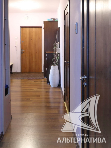 2-комнатная квартира, г. Брест, ул. Колесника, 2009 г.п., 6 / 9 панель, 57,1 / 54,4 / 29,2 / 9,2, санузел раздельный, лоджия застеклена, стеклопакеты, межкомнатные двери – шпон, входная дверь металлическая, потолки - 2,65 м, полы - ламинат (положен на стяжку), стены оклеены обоями, в санузле современная плитка, телефон, домофон. Кухонный гарнитур, встроенная бытовая техника: варочная поверхность, духовой шкаф, вытяжка. Шкаф-купе. Корпусная мебель в прихожей, комоды в зале. Квартира с хорошим ремонтом. Квартира расположена на две стороны. Чистый подъезд. Один пассажирский лифт. Во дворе игровая детская площадка.