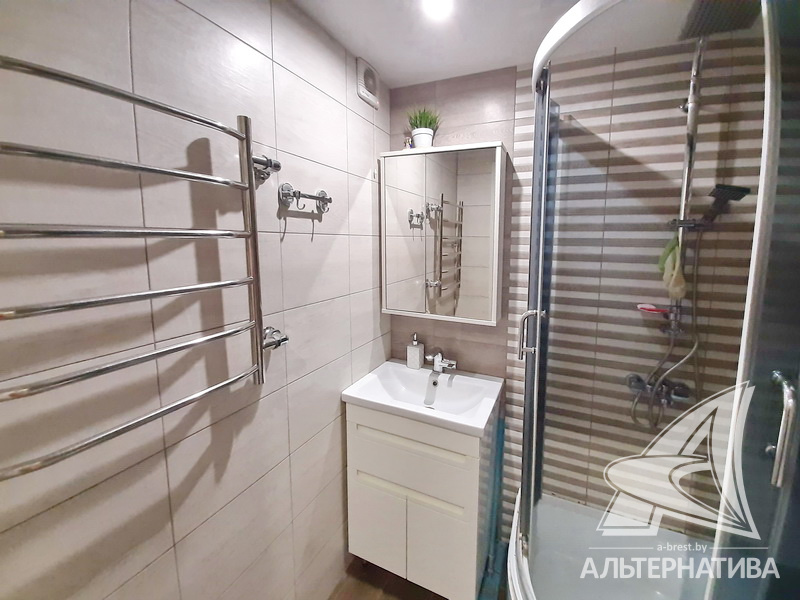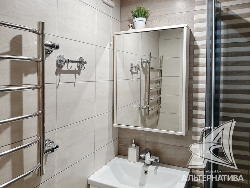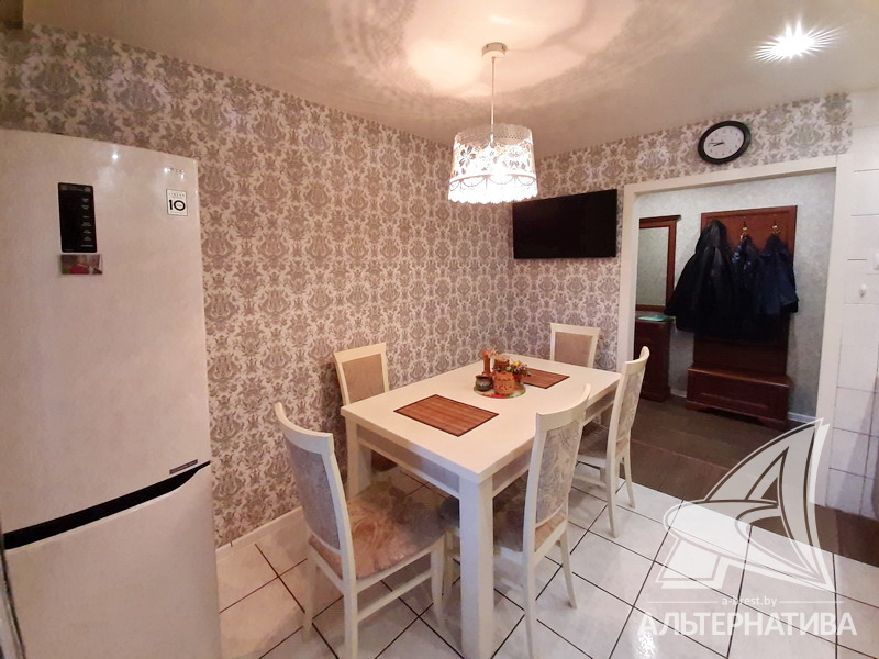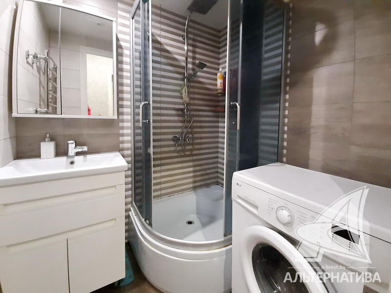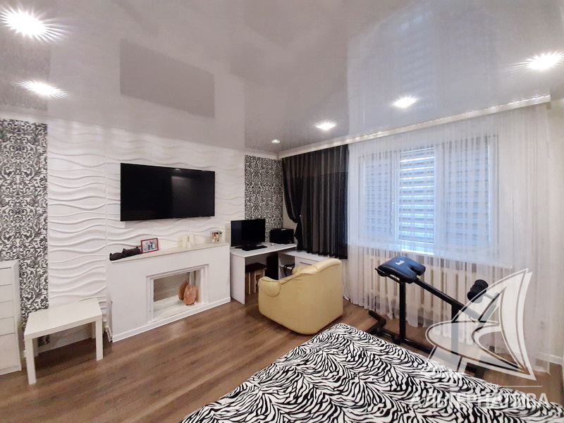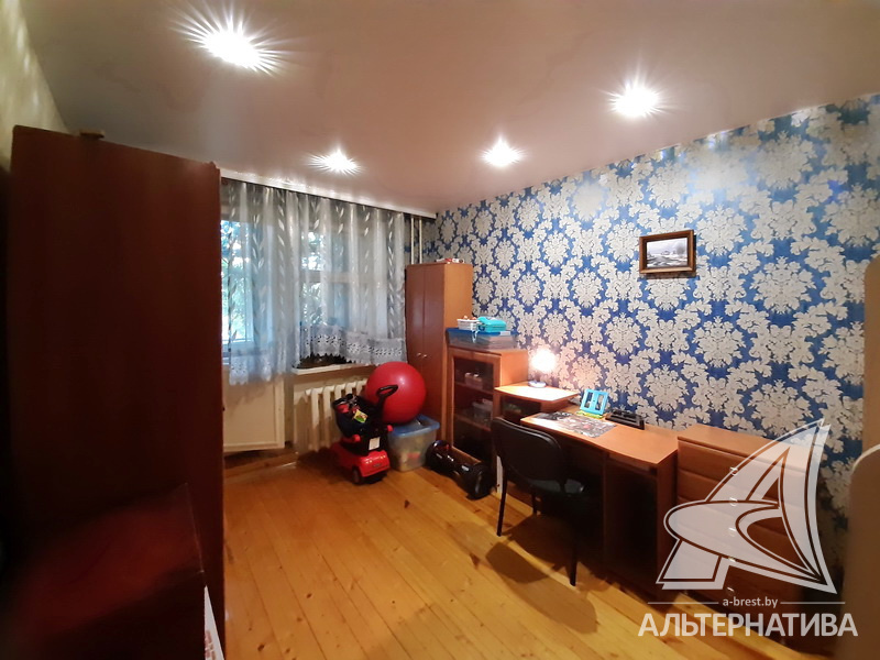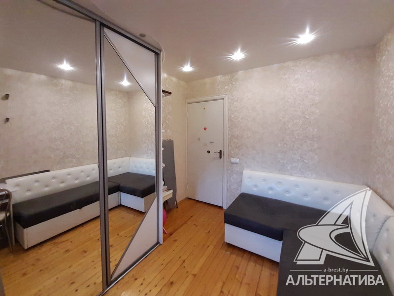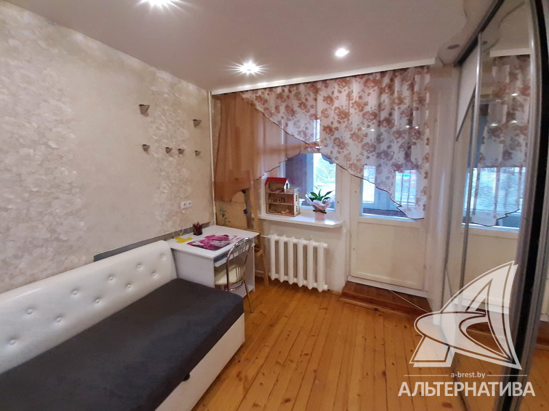 3-комнатная квартира, г. Брест, ул. Стафеева, 1997 г.п., 1 / 5 кирпич, 70,4 / 60,5 / 41,6 / 10,0, санузел раздельный, подвал, две лоджии застеклены, деревянные окна, в зале стеклопакеты, деревянные межкомнатные двери, натяжные потолки, полы - доска под лак, ламинат, плитка (прихожая, кухня) (положены на стяжку - кухня и зал), стены оклеены обоями, в санузле современная плитка, заменена сантехника, душевая кабина, заменены сантехнические трубы (пластик), инсталляция, проведена новая электропроводка, новый электросчетчик, телефон, домофон. Кухонный гарнитур, шкаф-купе в спальне. В квартире частично произведен ремонт. Окна жилых комнат выходят во двор. Во дворе парковка для автомобилей. Дом расположен в глубине двора.