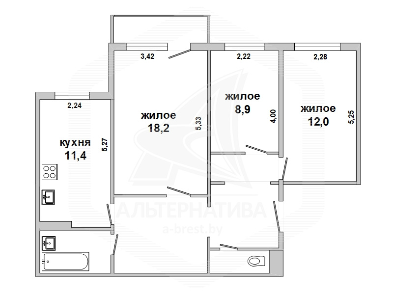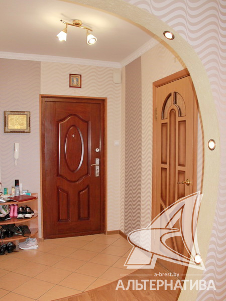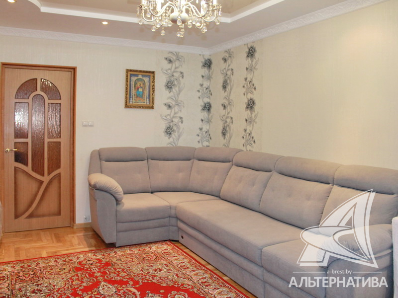 3-комнатная квартира, г. Брест, ул. Янки Купалы, 1997 г.п., 7 / 10 панель, 74,3 / 72,4 / 39,2 / 11,4, санузел раздельный, подвал, лоджия застеклена, двухкамерные стеклопакеты, межкомнатные двери – экошпон (дуб), входная дверь металлическая, потолки - снежка, комбинированные (зал), полы - паркет (положен на стяжку), стены ошпатлеваны, в санузле современная плитка, заменена сантехника, заменен полотенцесушитель, чугунная ванна, телефон, домофон. Два шкафа-купе. Варочная поверхность, умывальник, тумба, зеркало. Кухонный гарнитур в процессе замены. Квартира с хорошим ремонтом. Чистый подъезд.