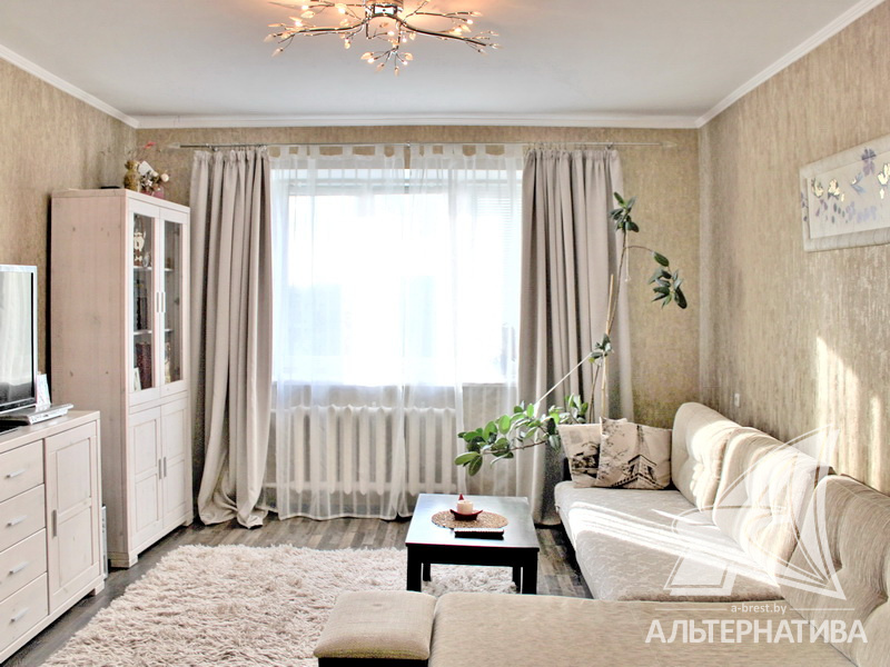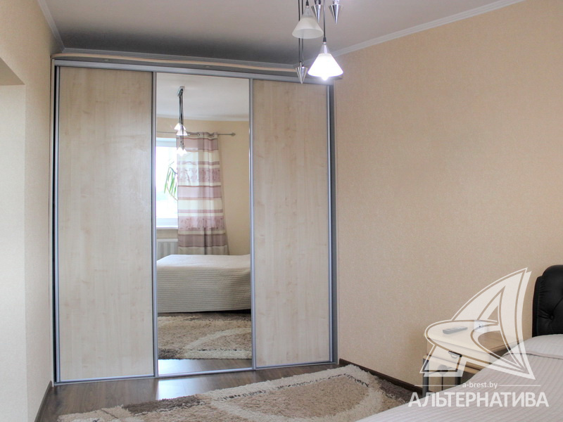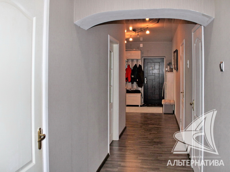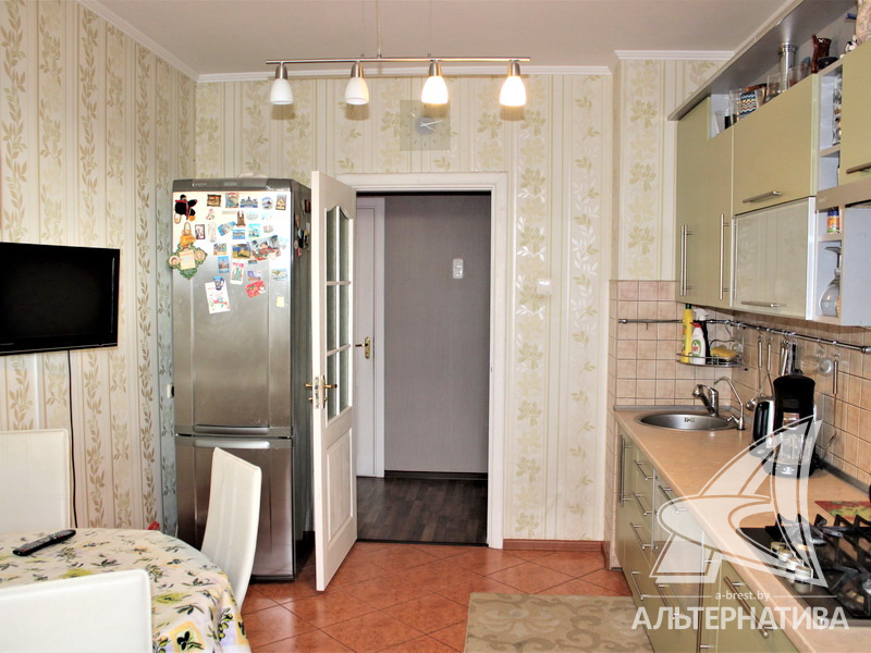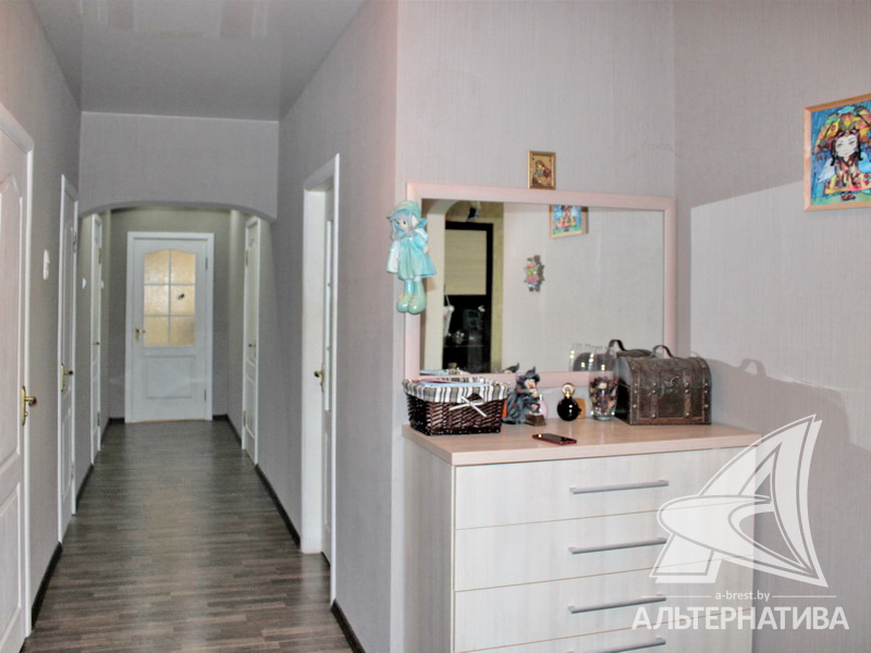 3-комнатная квартира, г. Брест, ул. Жукова, 2002 г.п., 5 / 5 кирпич, 93,3 / 89,6 / 49,1 / 12,4, санузел раздельный, подвал, две лоджии застеклены, деревянные стеклопакеты, межкомнатные двери – шпон, входная дверь металлическая, потолки - из гипсокартона, натяжные (2,70 м), полы - ламинат, стены оклеены обоями, в санузле современная плитка, заменена сантехника, заменен полотенцесушитель, чугунная ванна, заменены сантехнические трубы, телефон, домофон. Кухонный гарнитур, варочная поверхность, духовой шкаф, вытяжка, обеденная зона. Корпусная мебель в комнате и в прихожей. Шкаф-купе в спальне. Оборудована кладовка под гардеробную. Квартира с хорошим ремонтом. Все окна выходят во двор. Чистый подъезд. Технический этаж. Дом расположен в глубине двора.