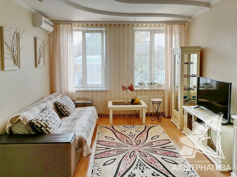 Квартира в блокированном жилом доме в г.Бресте. 1959 г.п., реконструкция 2014 года. 1 этаж. Общ.СНБ - 90,1 кв.м, общ.- 90,1 кв.м, жил.- 39,0 кв.м, кух.- 20,0 кв.м. 3 комнаты, потолки - 2,9 м.