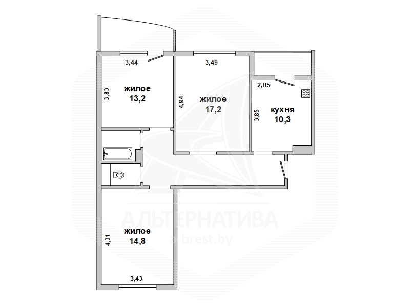 3-комнатная квартира, г. Брест, ул. Рокоссовского, 2012 г.п., 1 / 10 панель, 78,8 / 74,1 / 45,2 / 10,3, санузел раздельный, две лоджии застеклены, стеклопакеты, межкомнатные двери – МДФ, входная дверь металлическая, потолки - снежка (2,63 м), полы - ламинат и плитка, стены оклеены обоями, в санузле современная плитка, заменена сантехника, заменен полотенцесушитель, телефон, домофон, система видеонаблюдения. Встроенный кухонный гарнитур, два шкаф-купе (коридор, спальня), два встроенных шкафа на лоджии. Квартира с хорошим ремонтом. Чистый подъезд. Тамбур на две квартиры. Дом оборудован пандусом. Во дворе игровая детская площадка, парковка для автомобилей. Дом расположен в глубине двора. Есть своя закрытая территория. Есть возможность сделать погреб под лоджией.